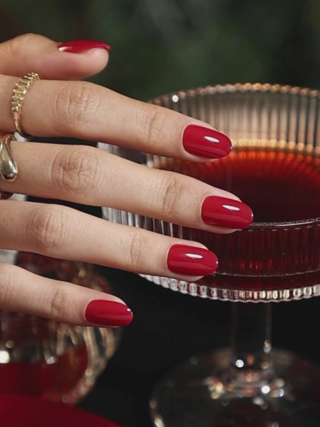 Cherry Dark Red Christmas Short Oval Nails