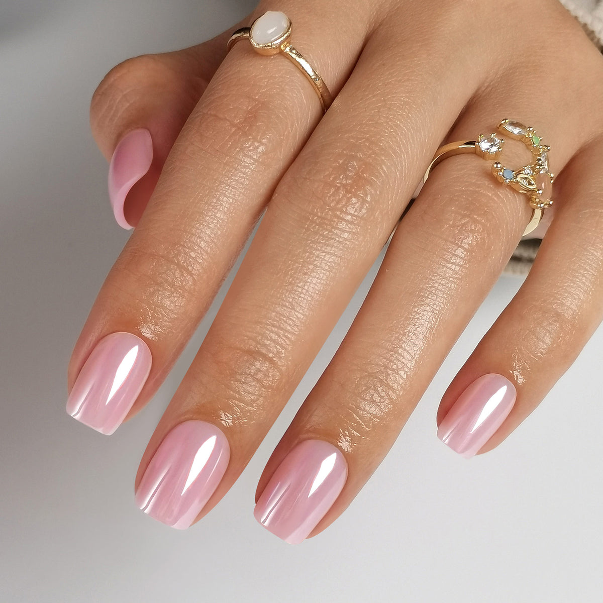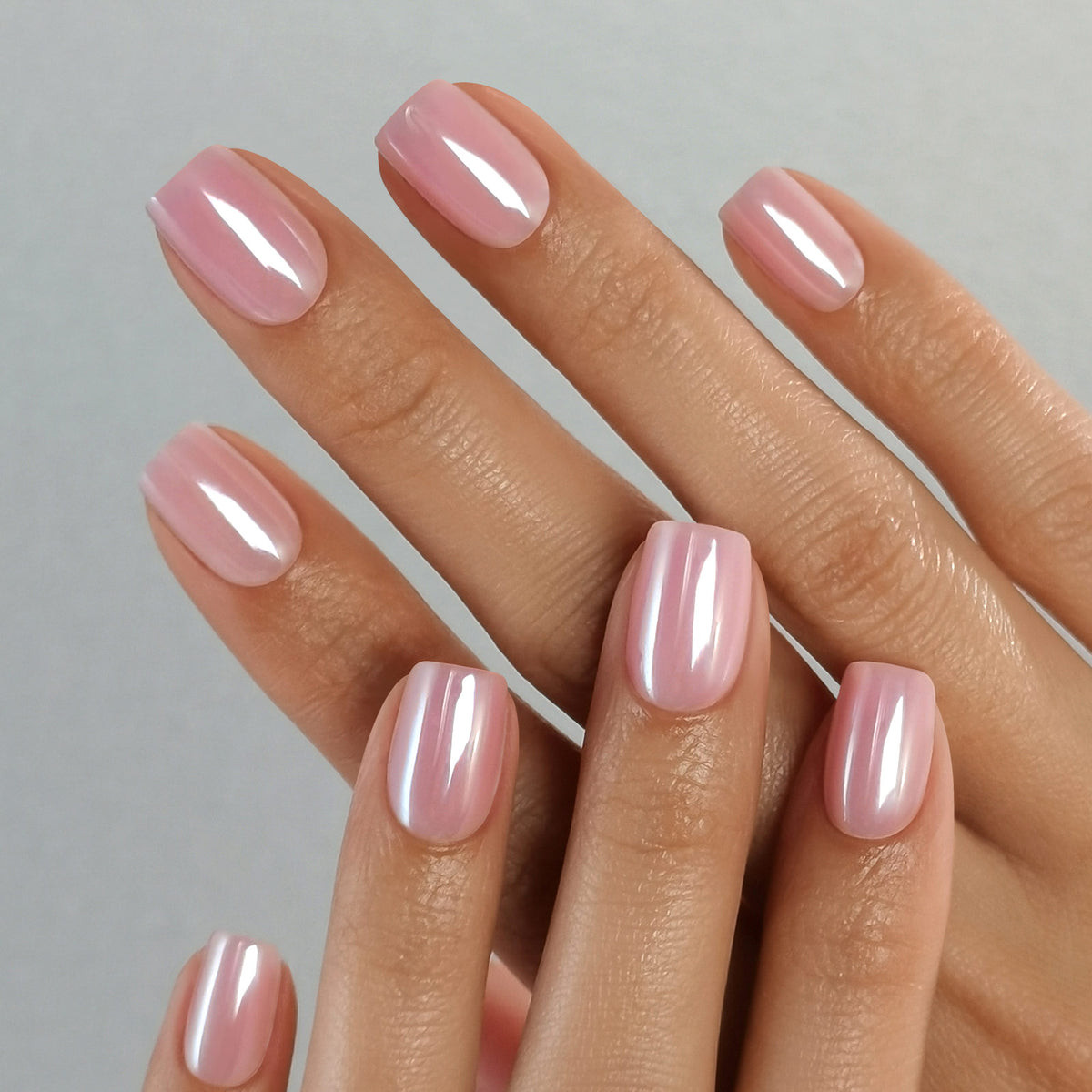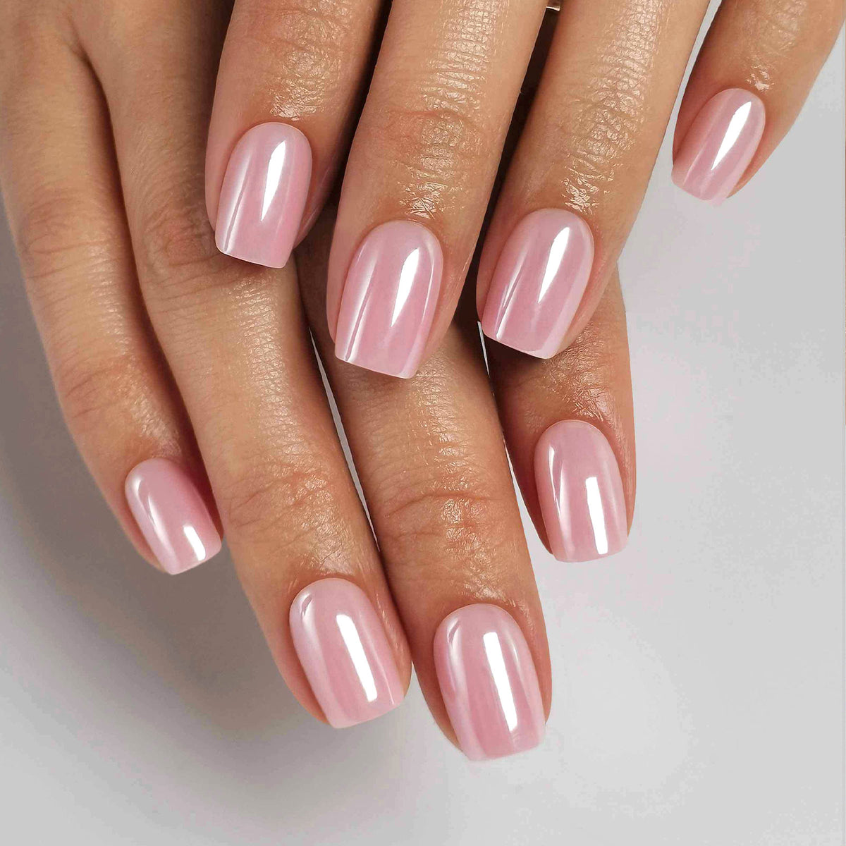 SHANGMENG® Glazed Donut Light Pink Short Square Soft Gel Press-on Nails