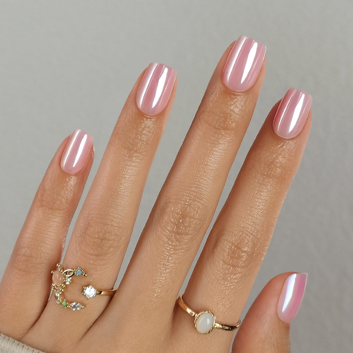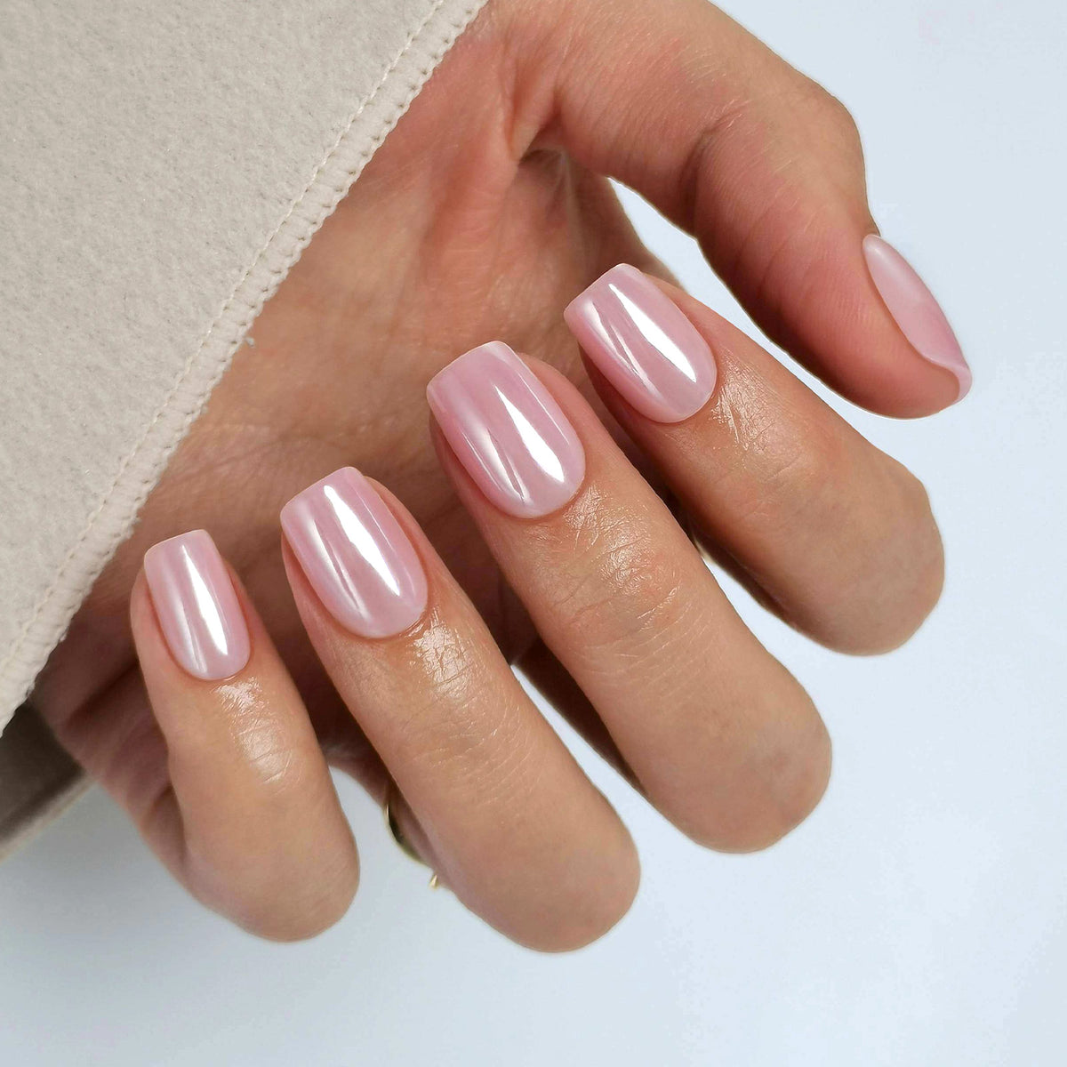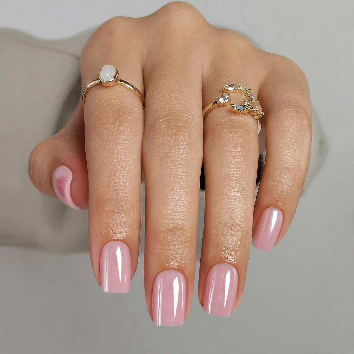 SHANGMENG® Glazed Donut Light Pink Short Square Soft Gel Press-on Nails