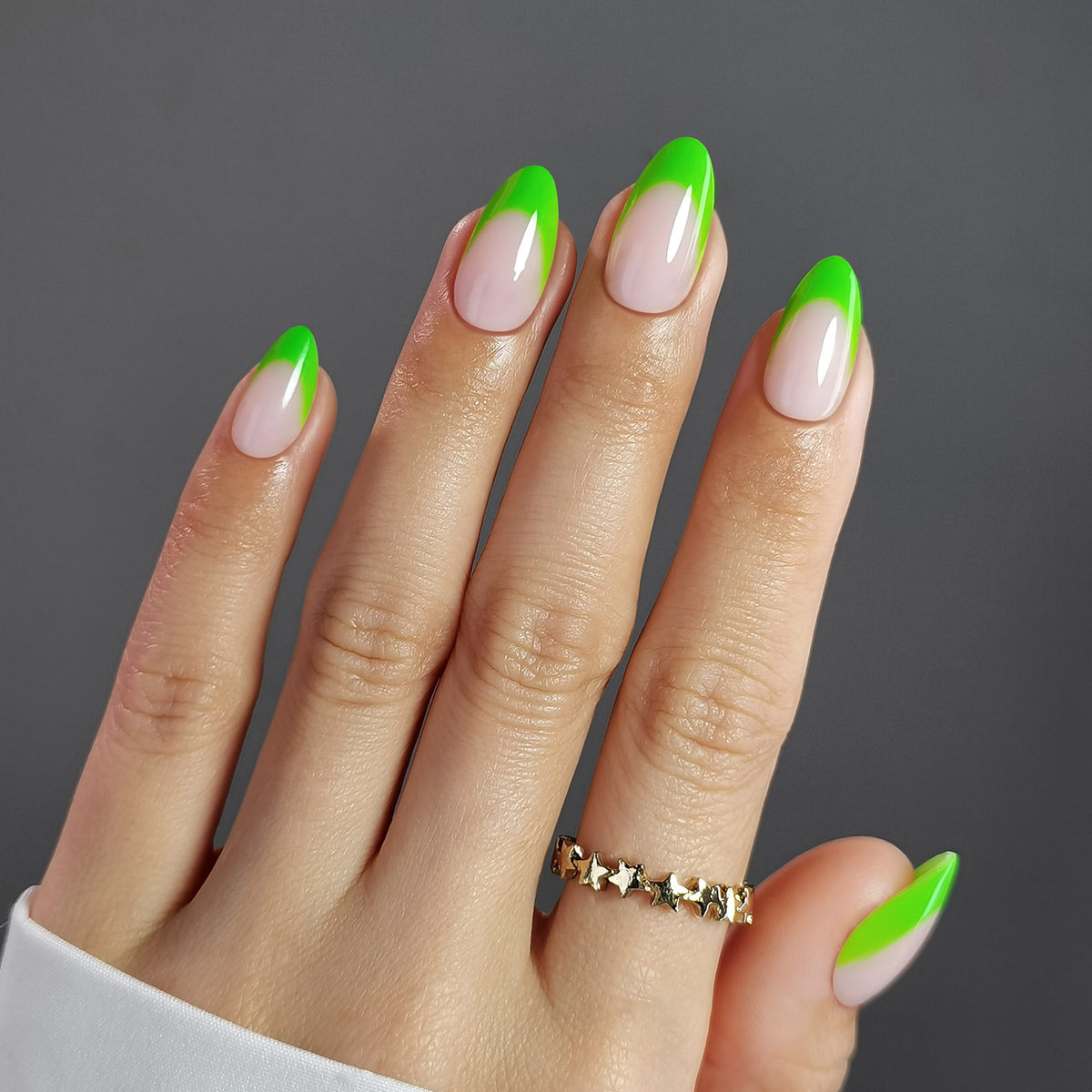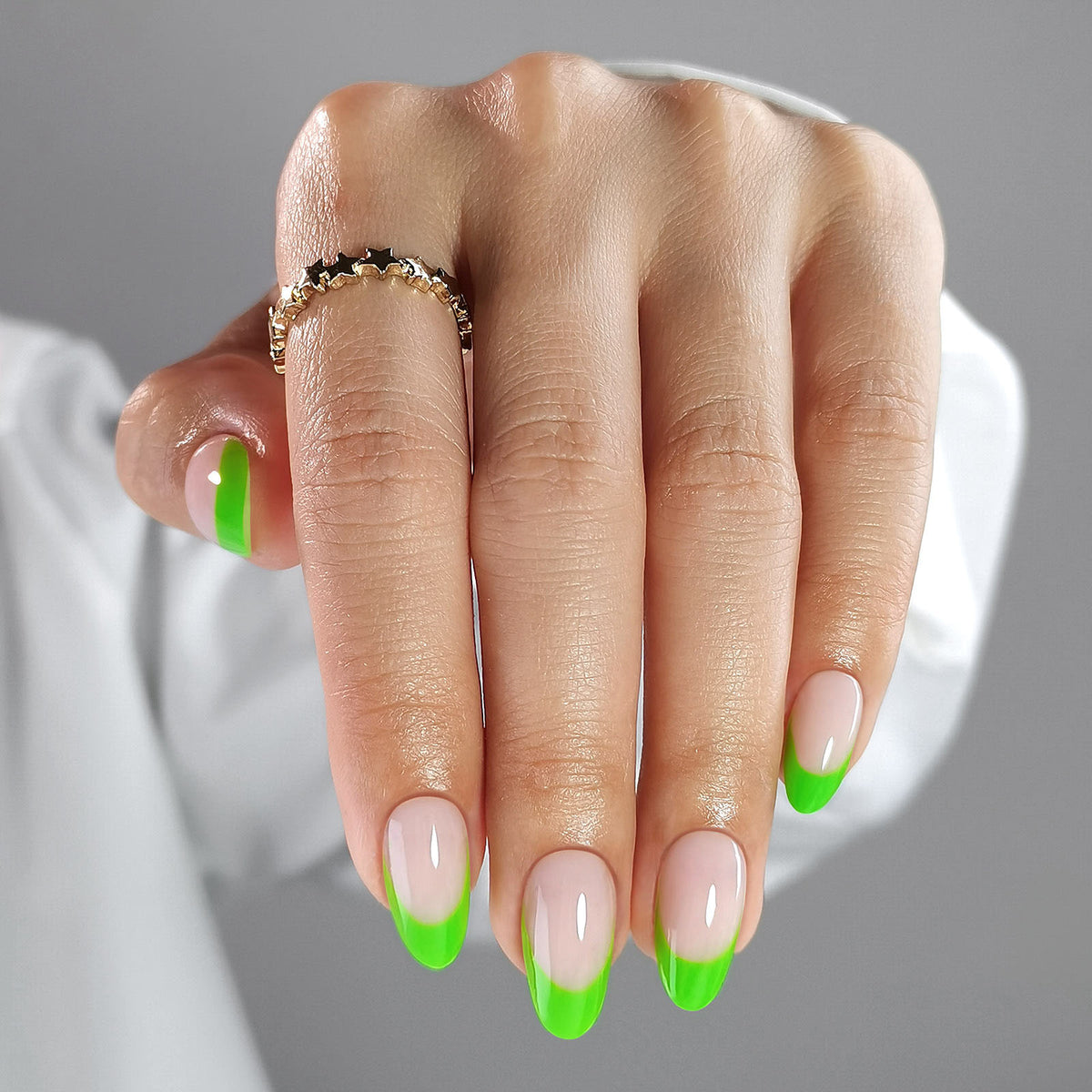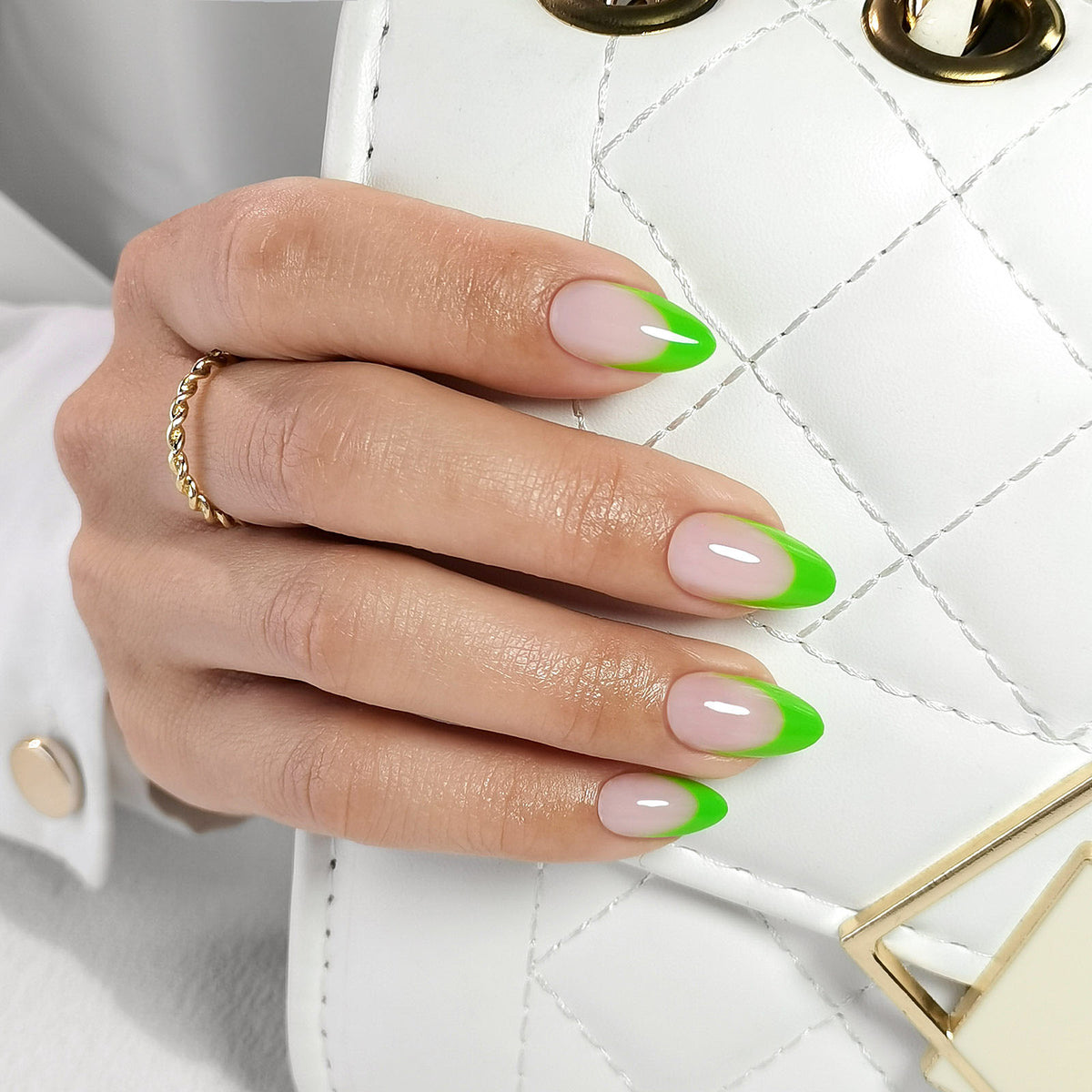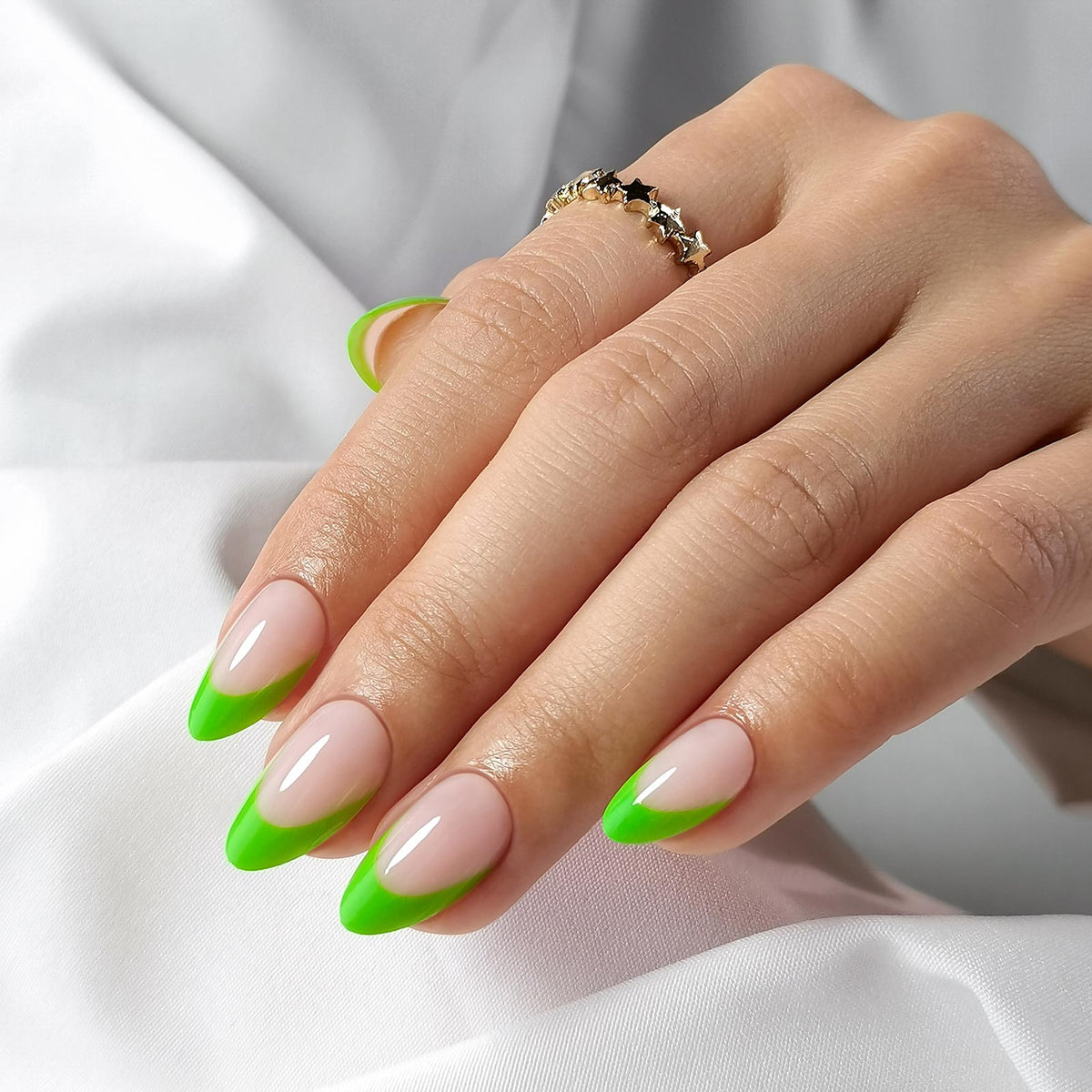 French Green Tips Short Almond Nails