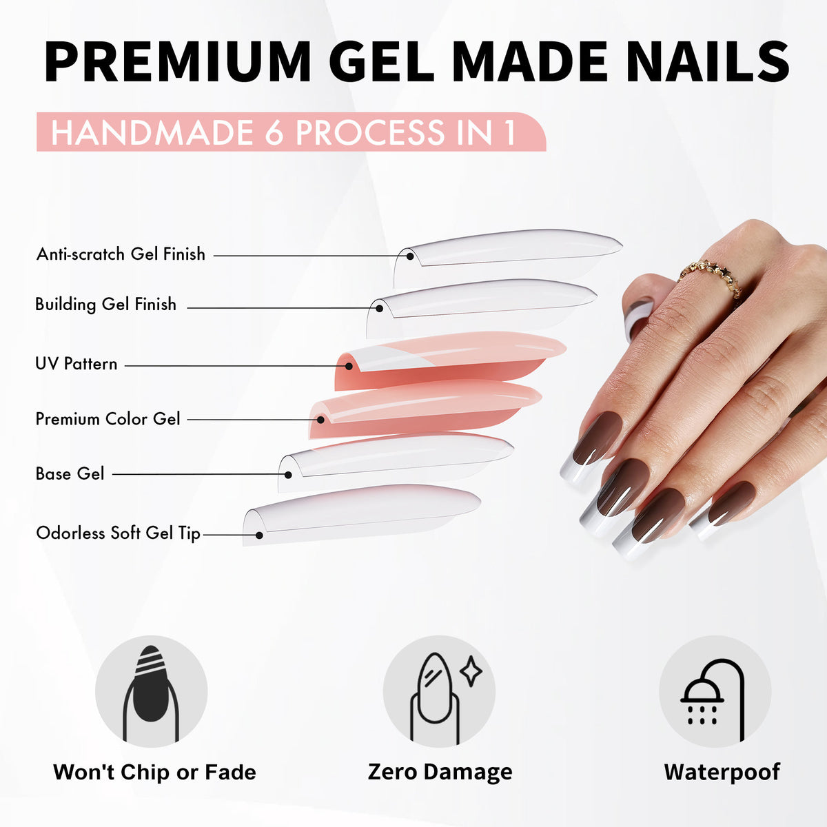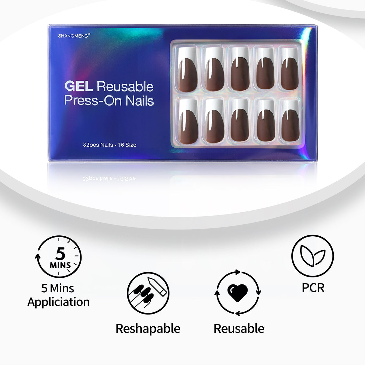 Made by Soft Gel: SHANGMENG®Nail created these acrylic press on nails entirely through a handmade 6-layer process (soft gel tip, base gel, color gel, pattern, double-layer gel finish). The colors and patterns are made with gel polish instead of being printed with ink. You can get our salon-like nails in 5 minutes!!