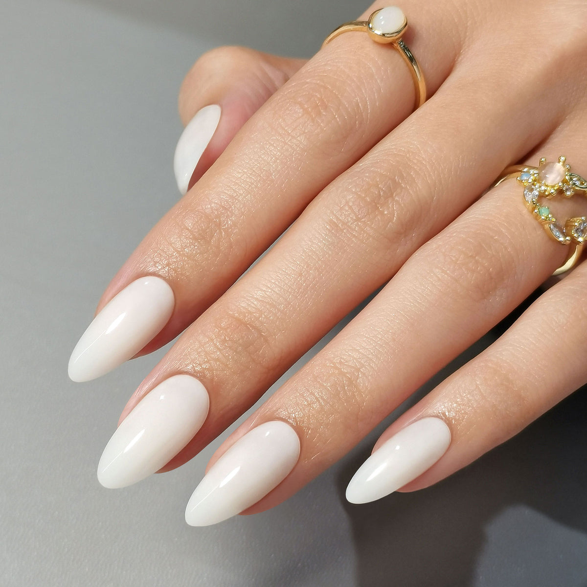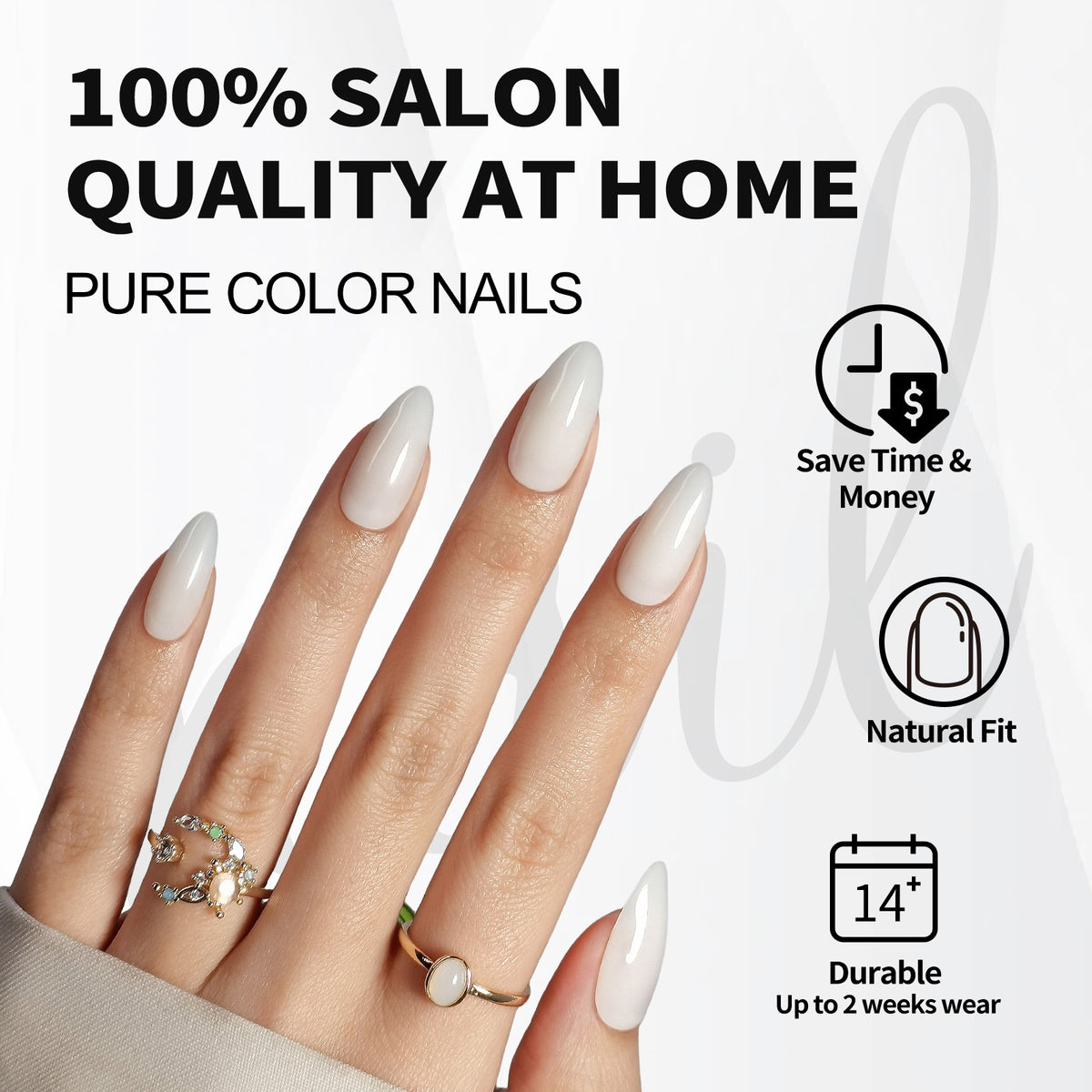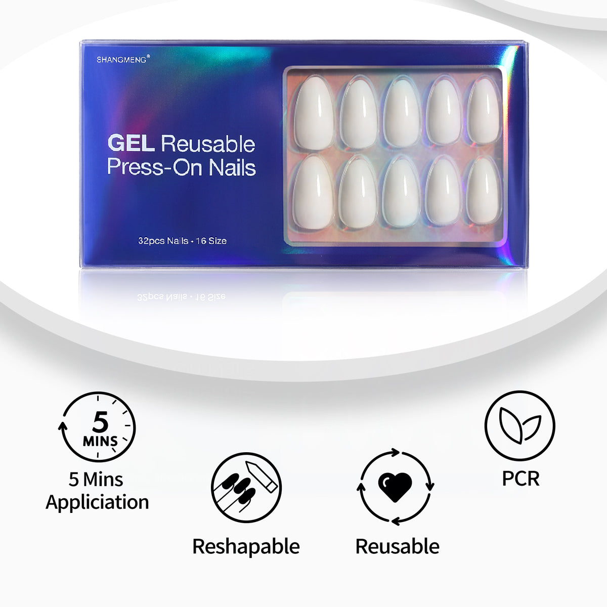 SHANGMENG® Milky White Medium Almond Soft Gel Press-on Nails
