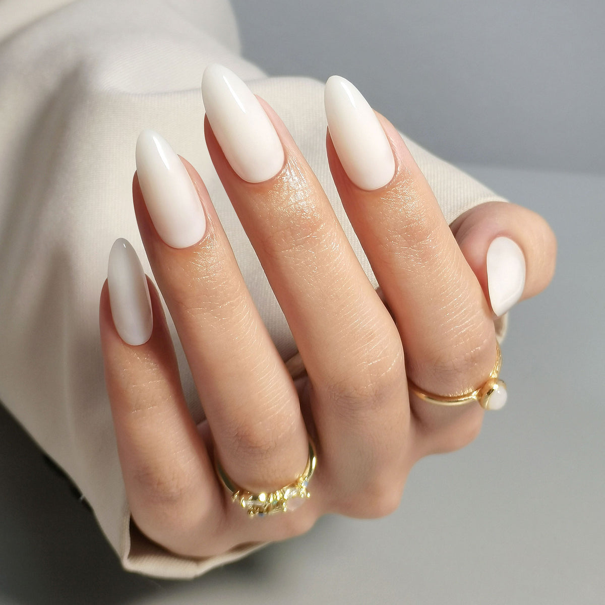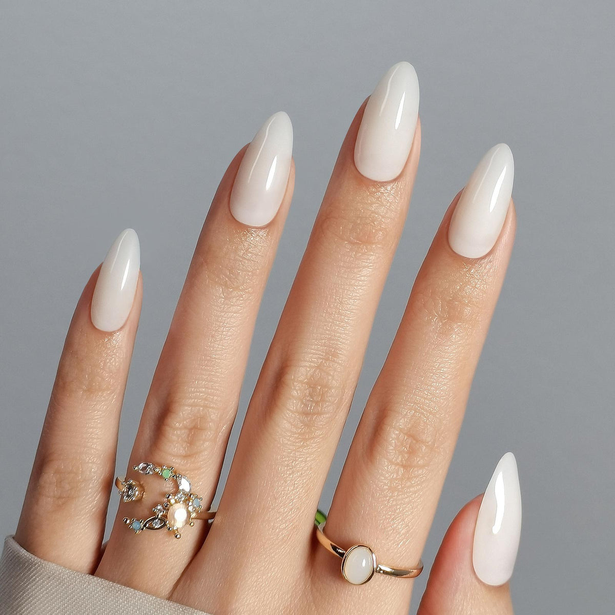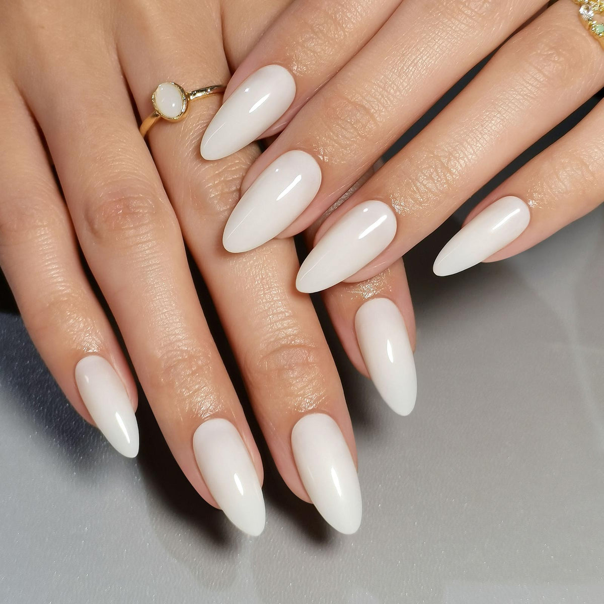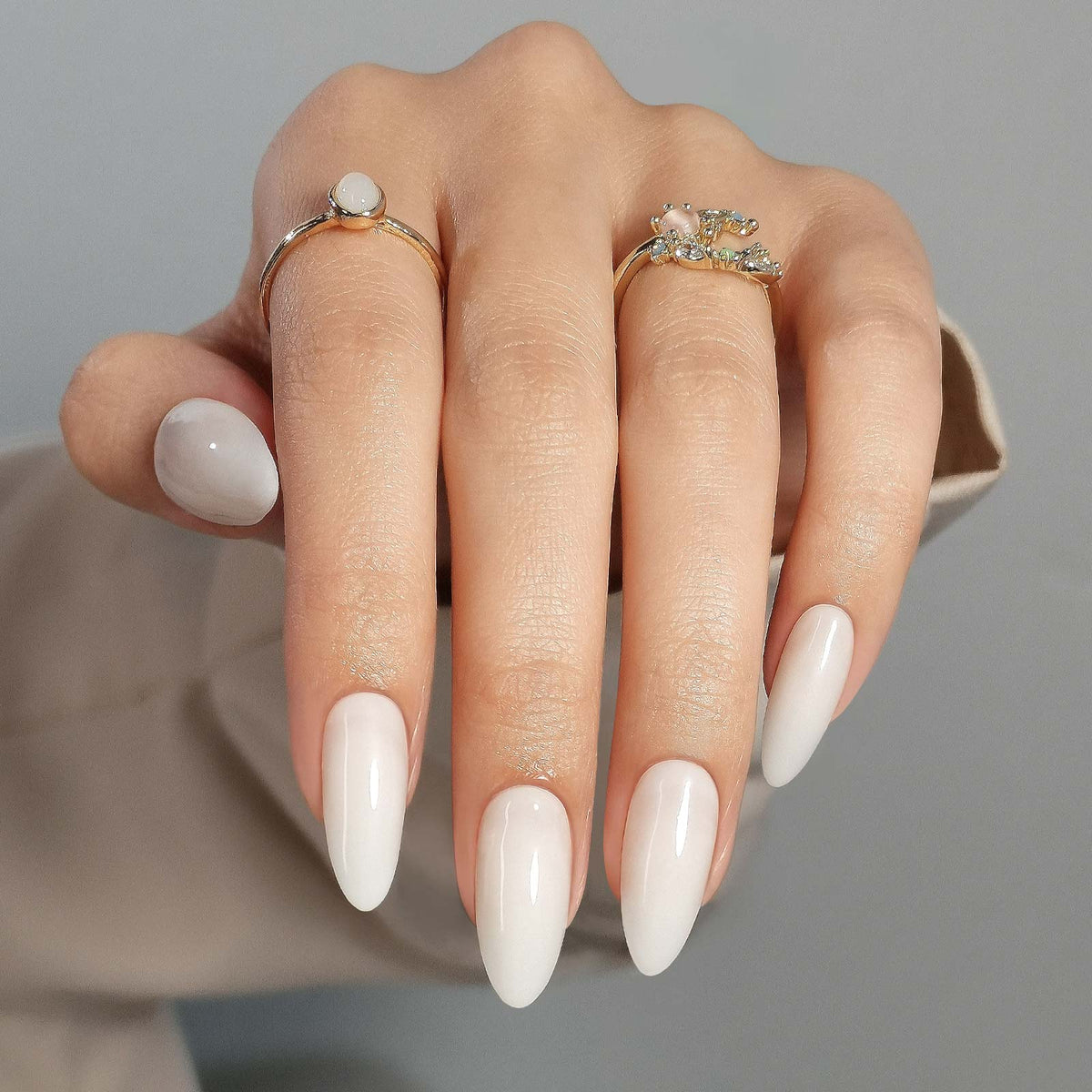 SHANGMENG® Milky White Medium Almond Soft Gel Press-on Nails