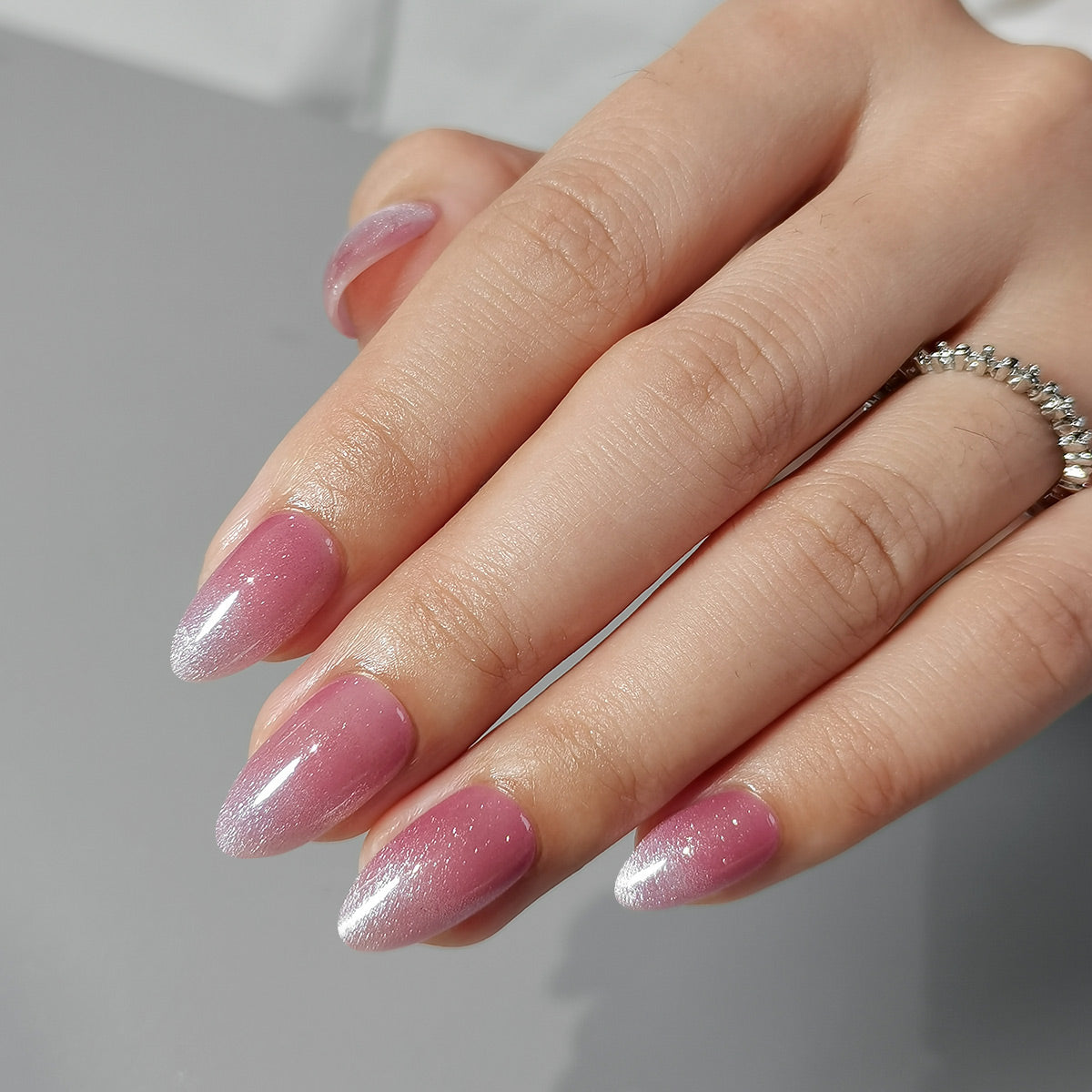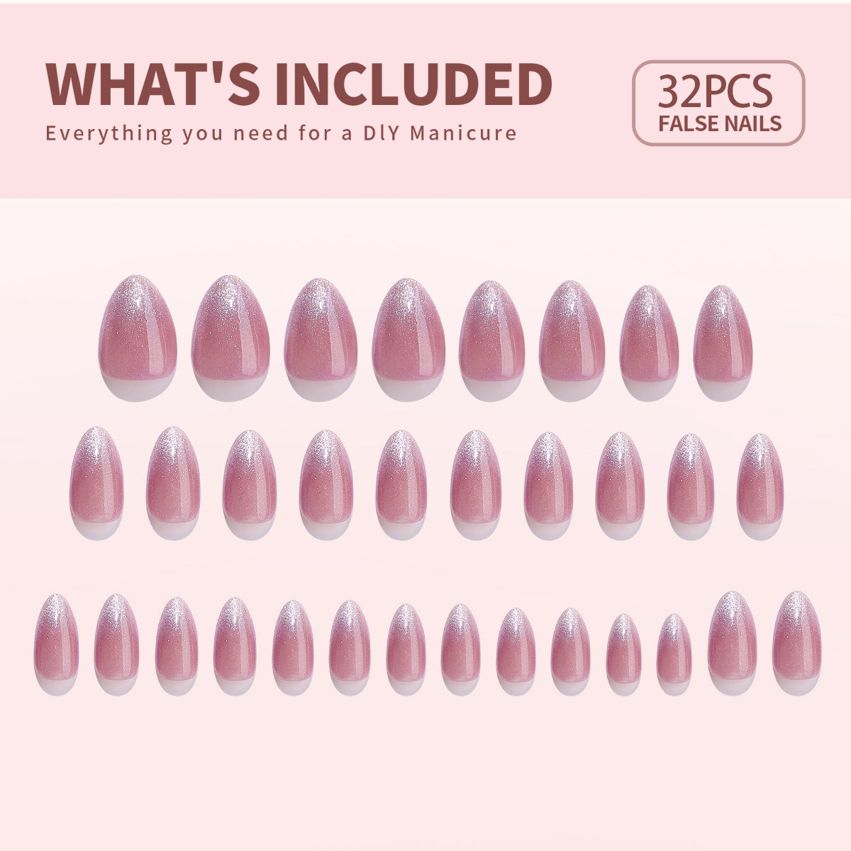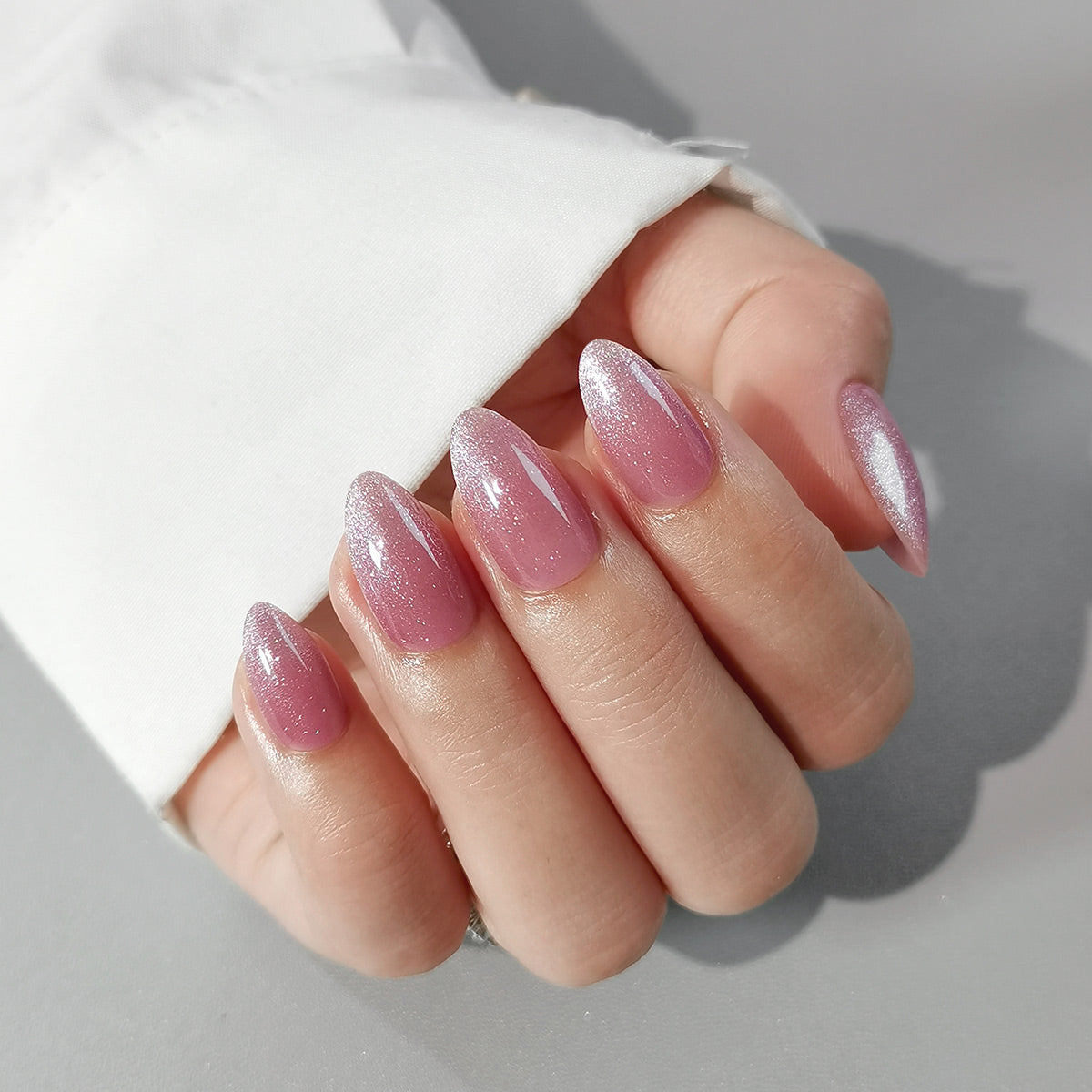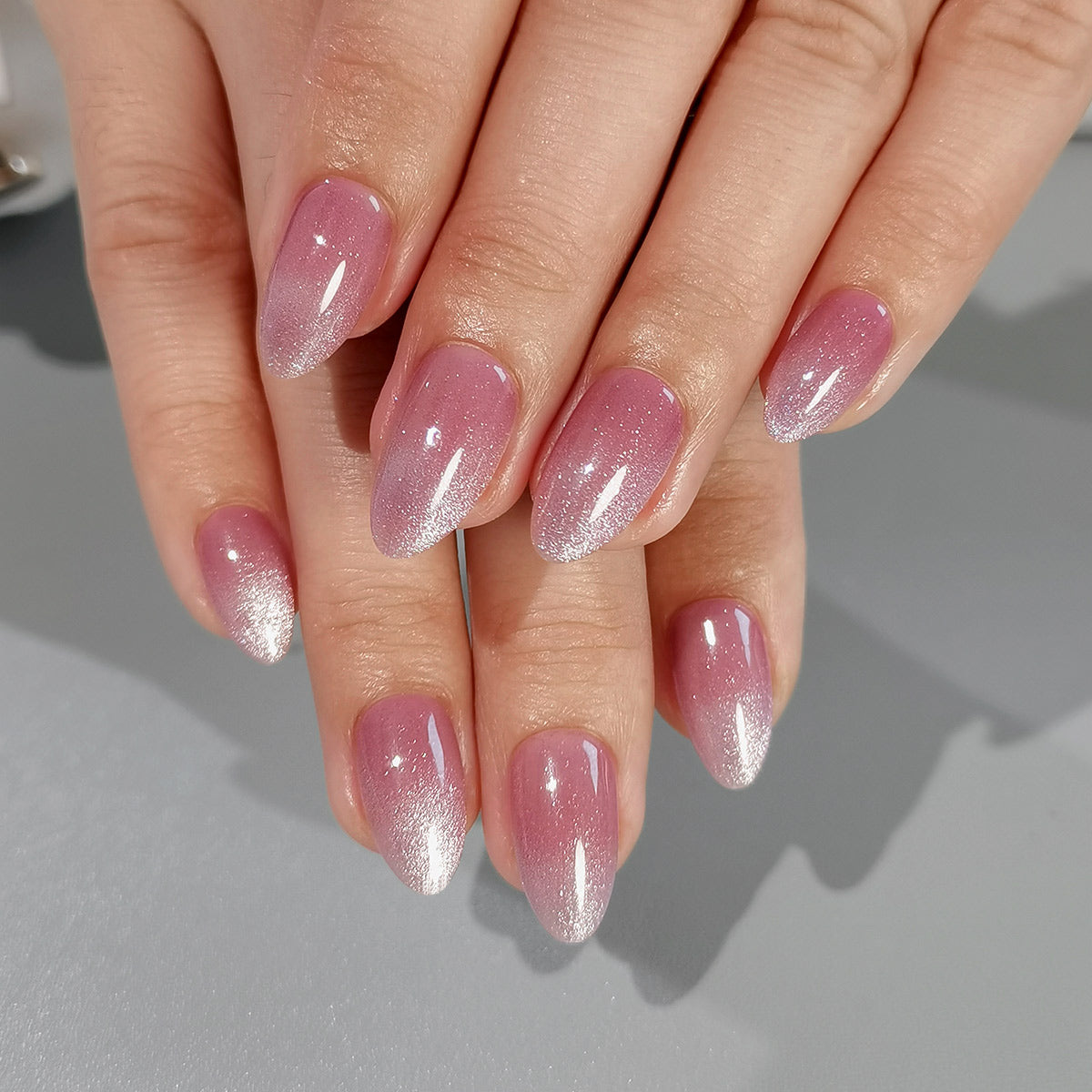 SHANGMENG® Pink Cat Eye Short Almond Soft Gel Press-on Nails