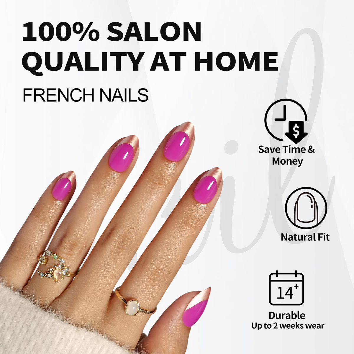 SHANGMENG® Violet Gold-Tipped French Tip Short Press-on Nails