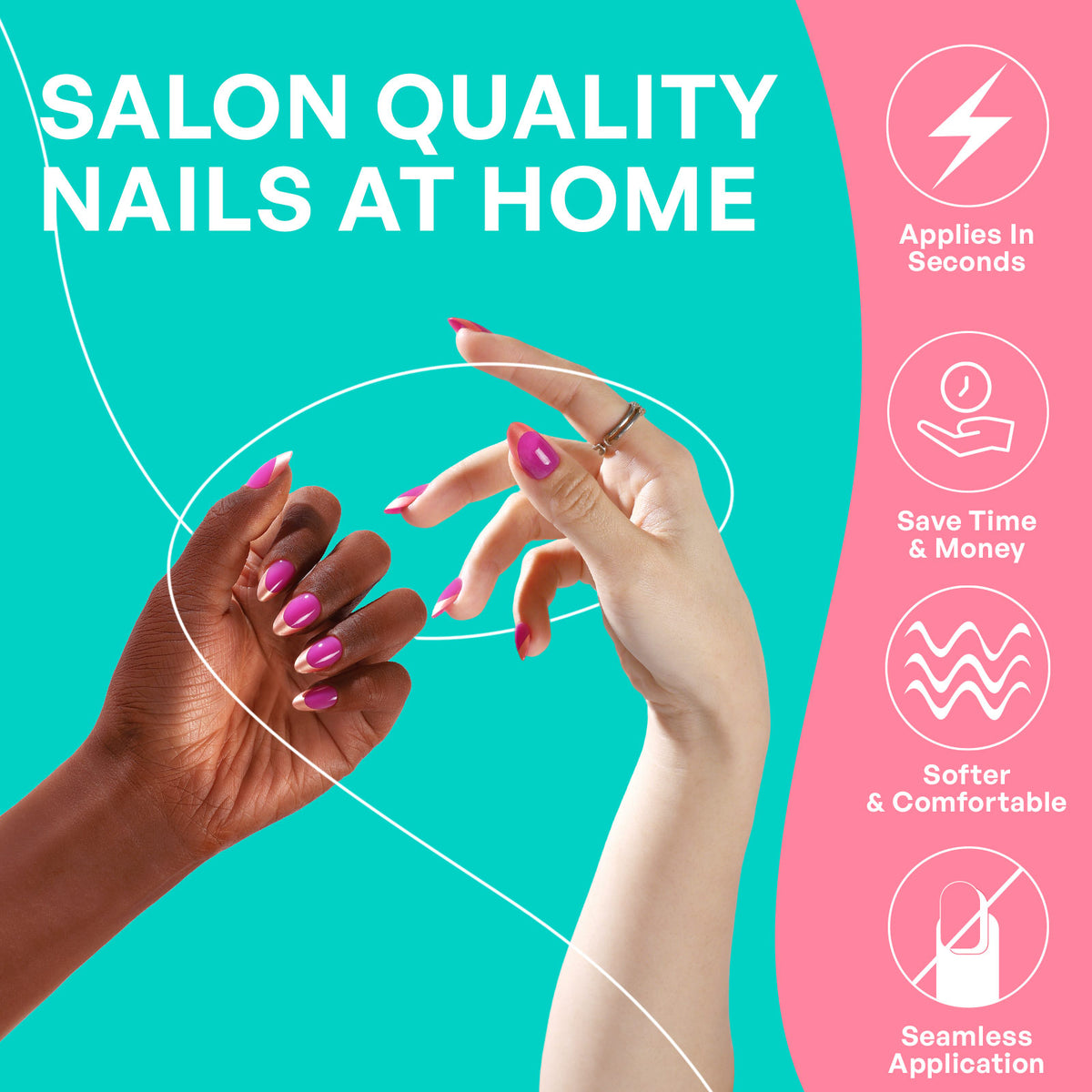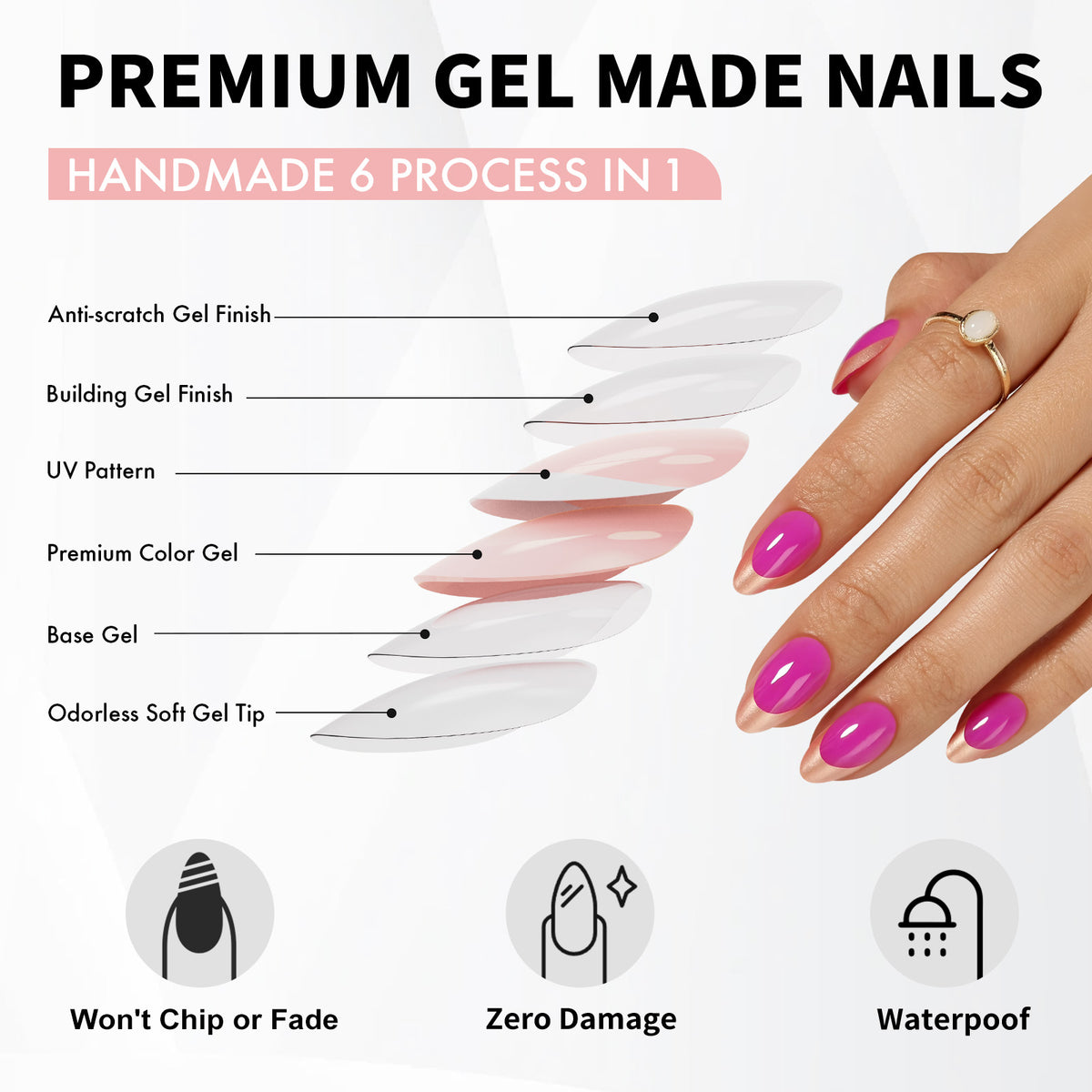 Made by Soft Gel: SHANGMENG®Nail created these acrylic press on nails entirely through a handmade 6-layer process (soft gel tip, base gel, color gel, pattern, double-layer gel finish). The colors and patterns are made with gel polish instead of being printed with ink. You can get our salon-like nails in 5 minutes!!