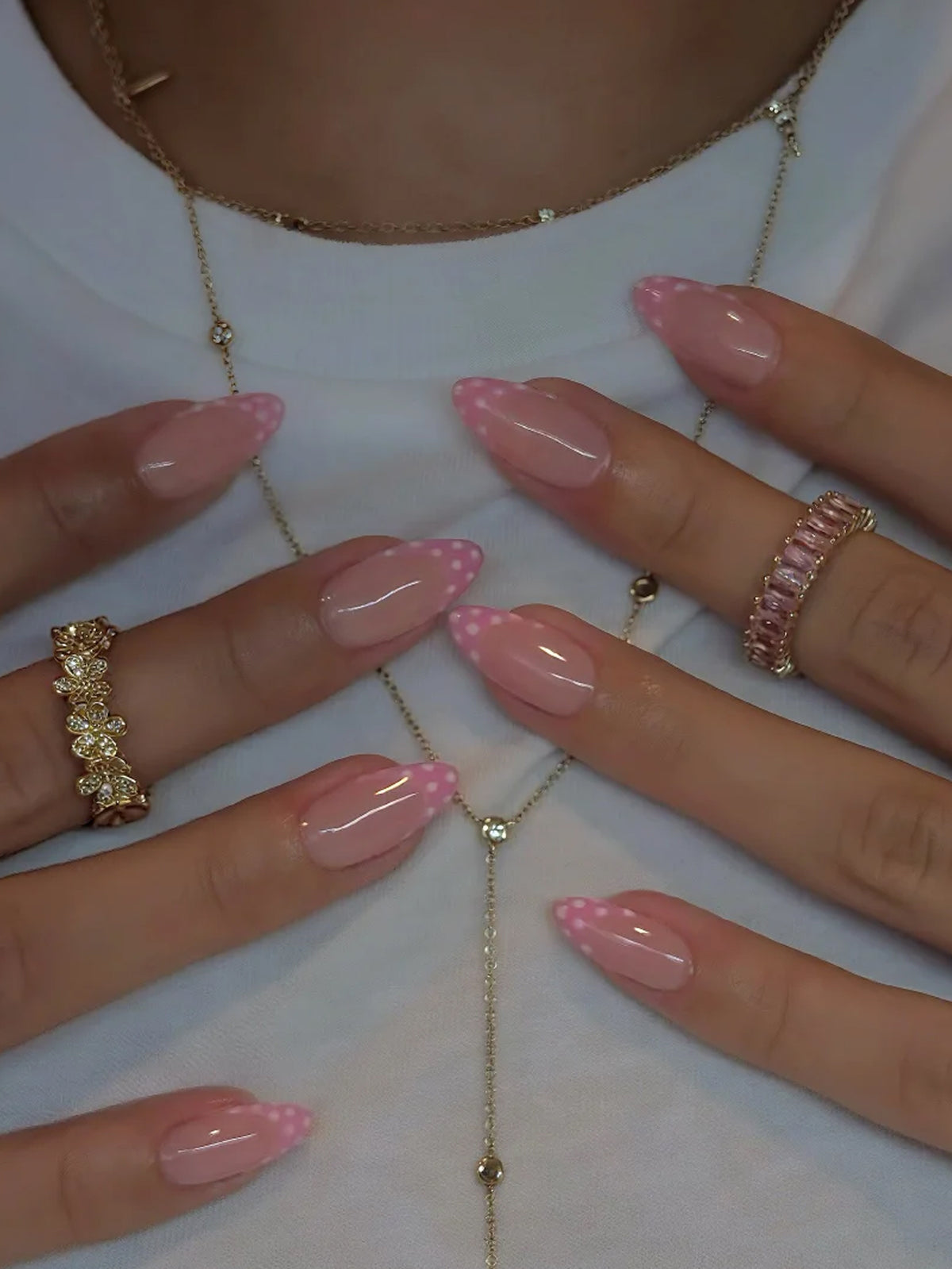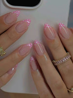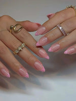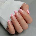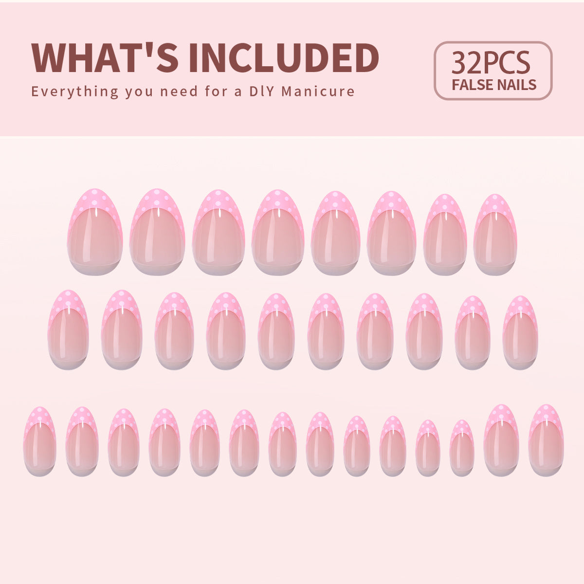 SHANGMENG® Pink Polka Dot French Tips Almond Nails - Soft Gel Press on Nails