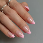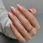 Silver Futuristic Ombre Pink 3D Almond Nails