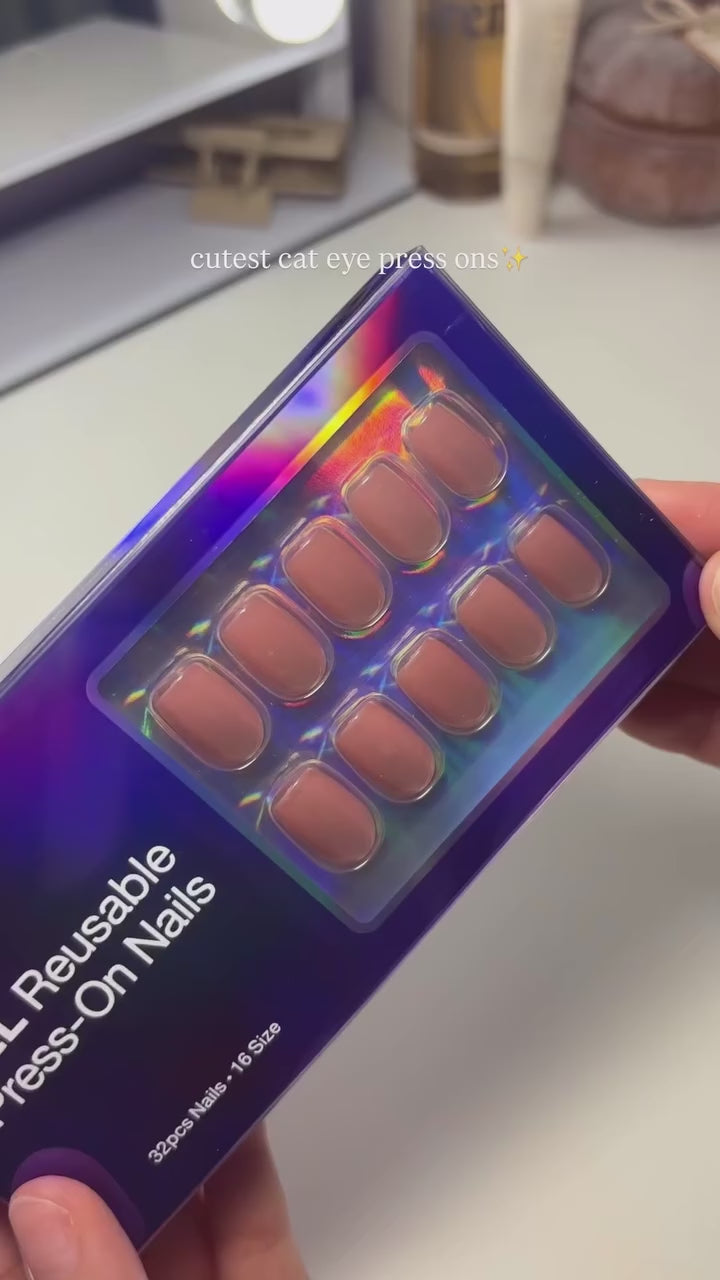 SHANGMENG® Cocoa Brown Cat Eye Short Square Press on Nails Kit