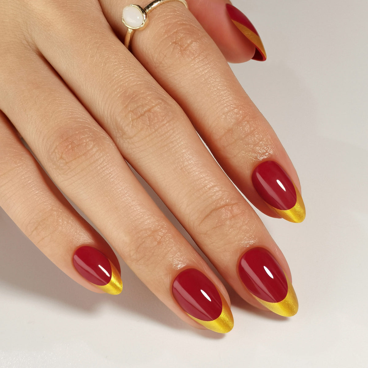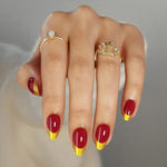 Red and Gold French Tip Almond Nails Christmas