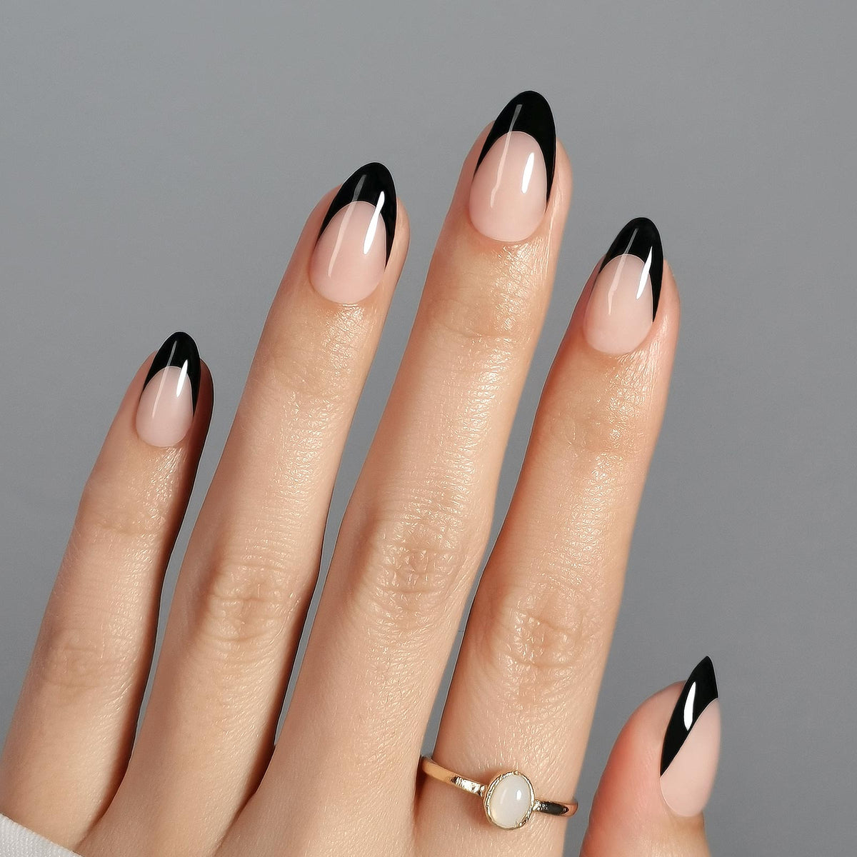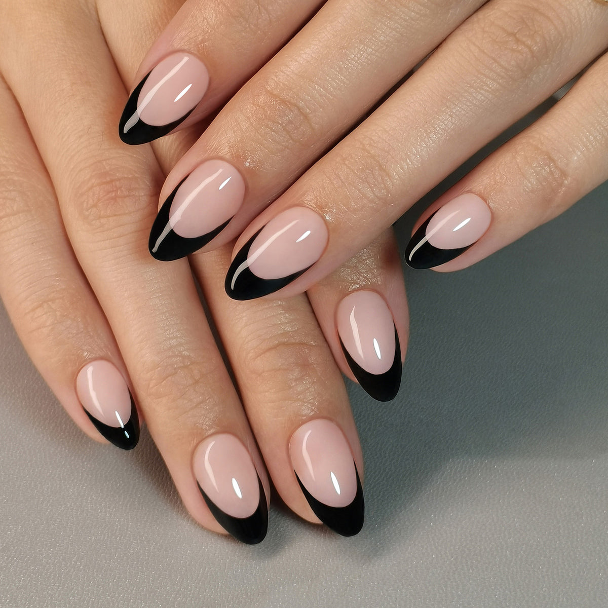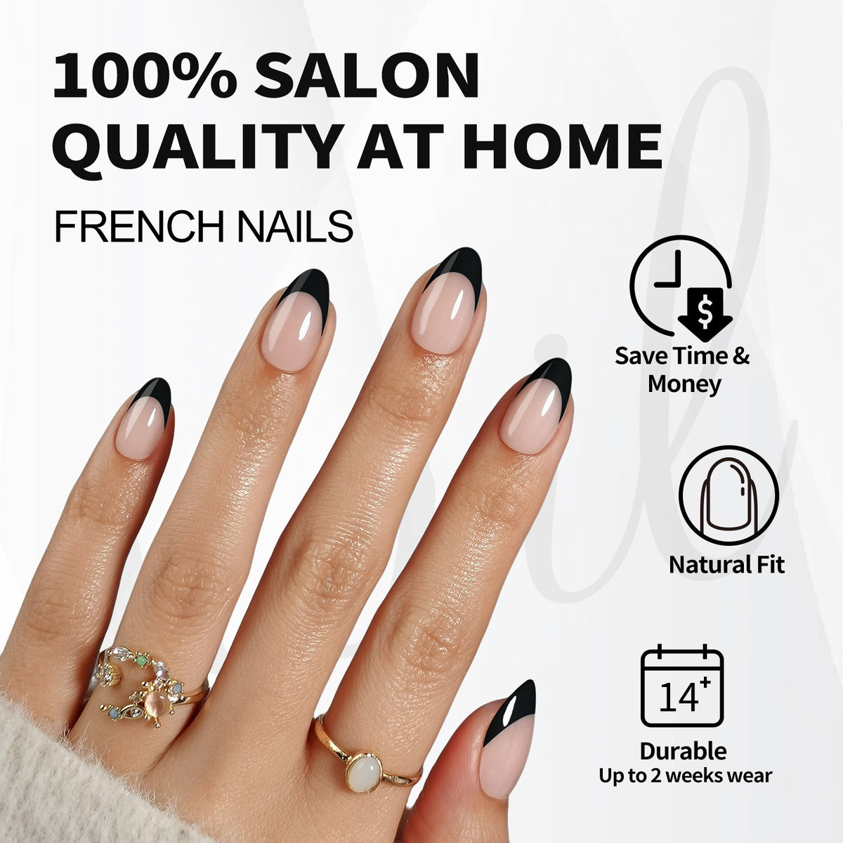SHANGMENG® Black and Pink French Tips Short Almond Soft Gel Press-on Nails