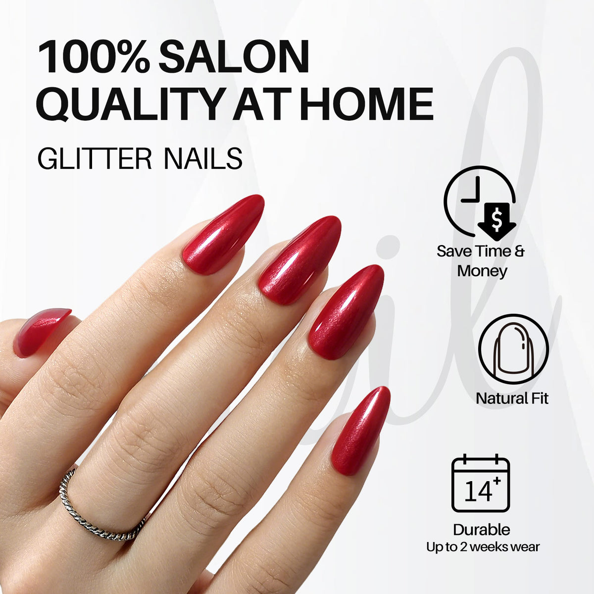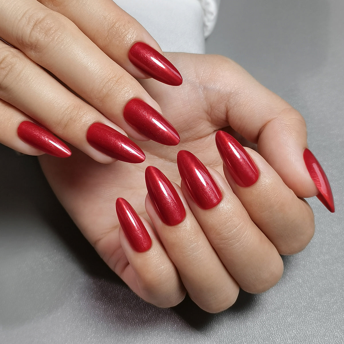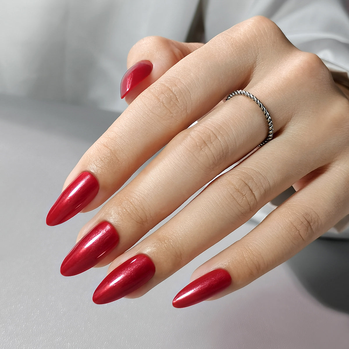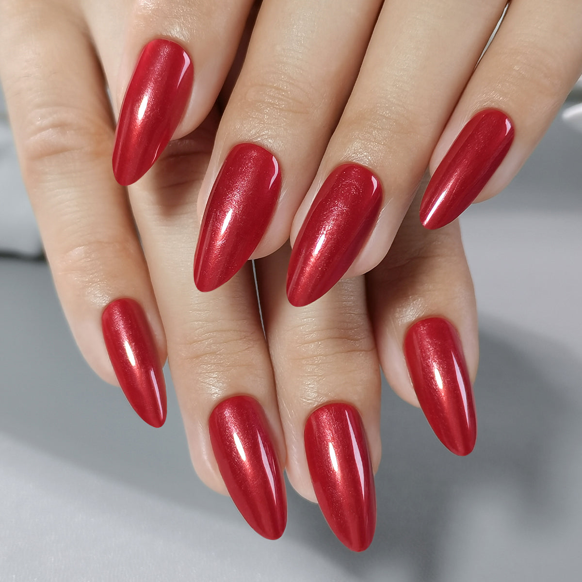 SHANGMENG® Glossy Red Long Almond Press on Nails