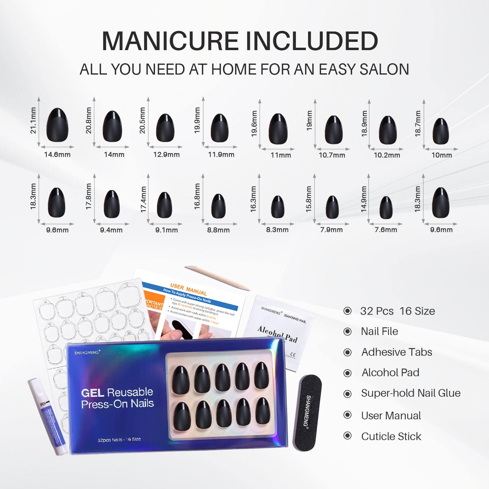 • 32 Gel Nails (16 inclusive sizes, 32 pieces)
