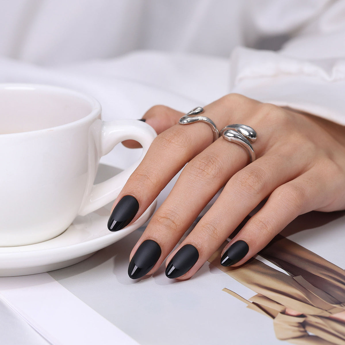 SHANGMENG® Matte Black French Tips Short Almond Nails