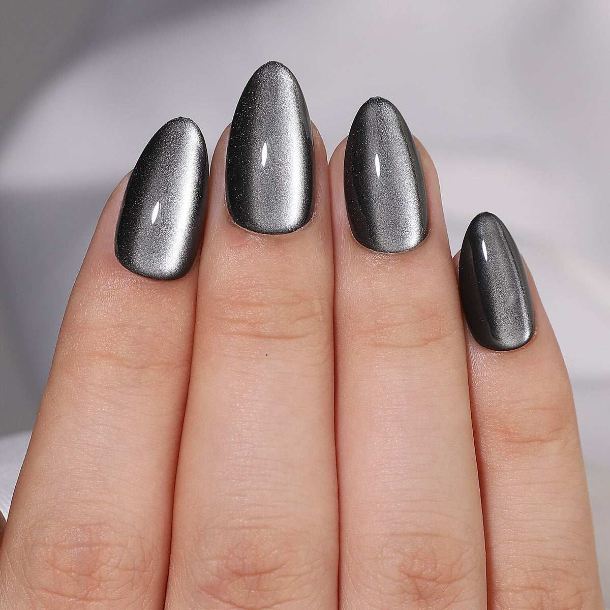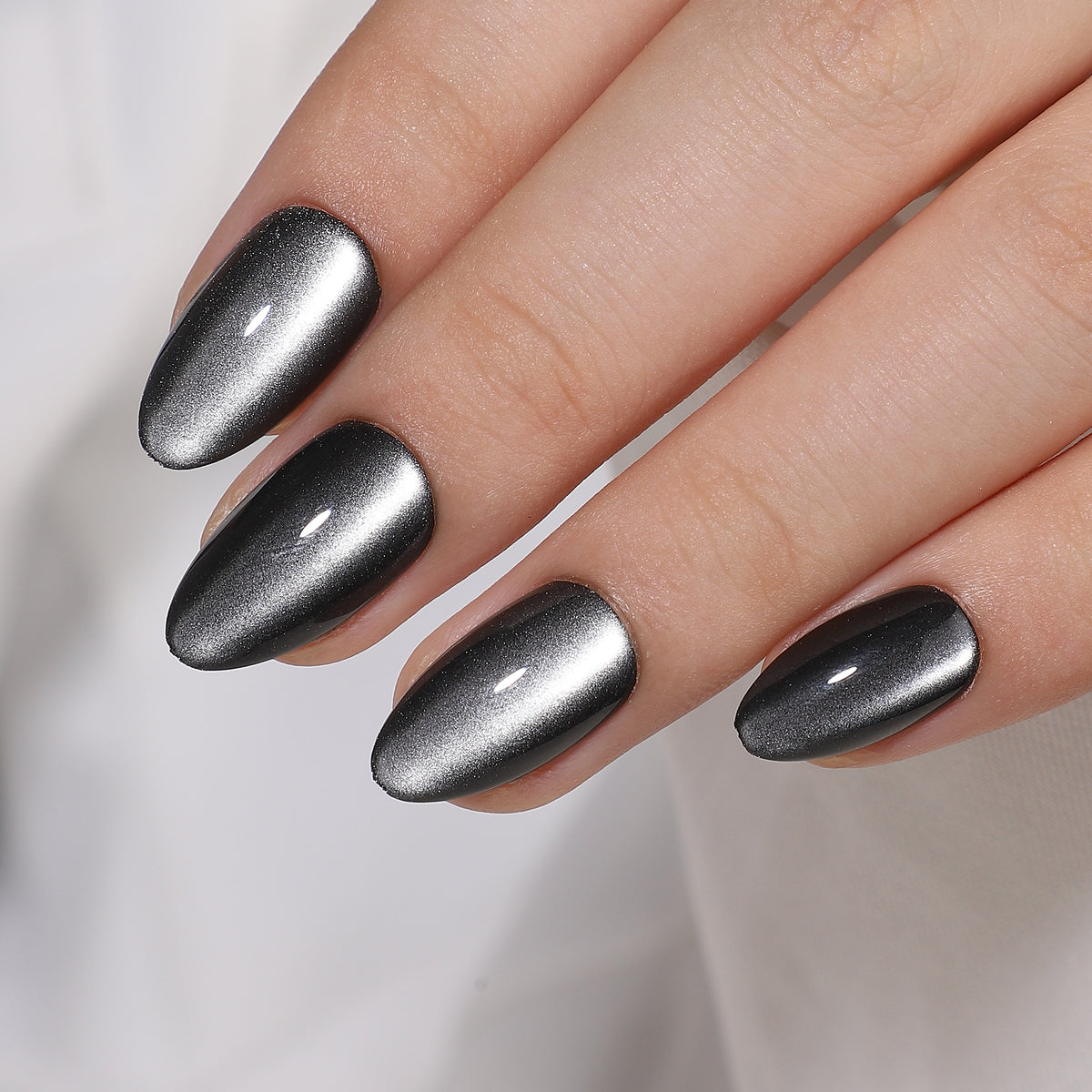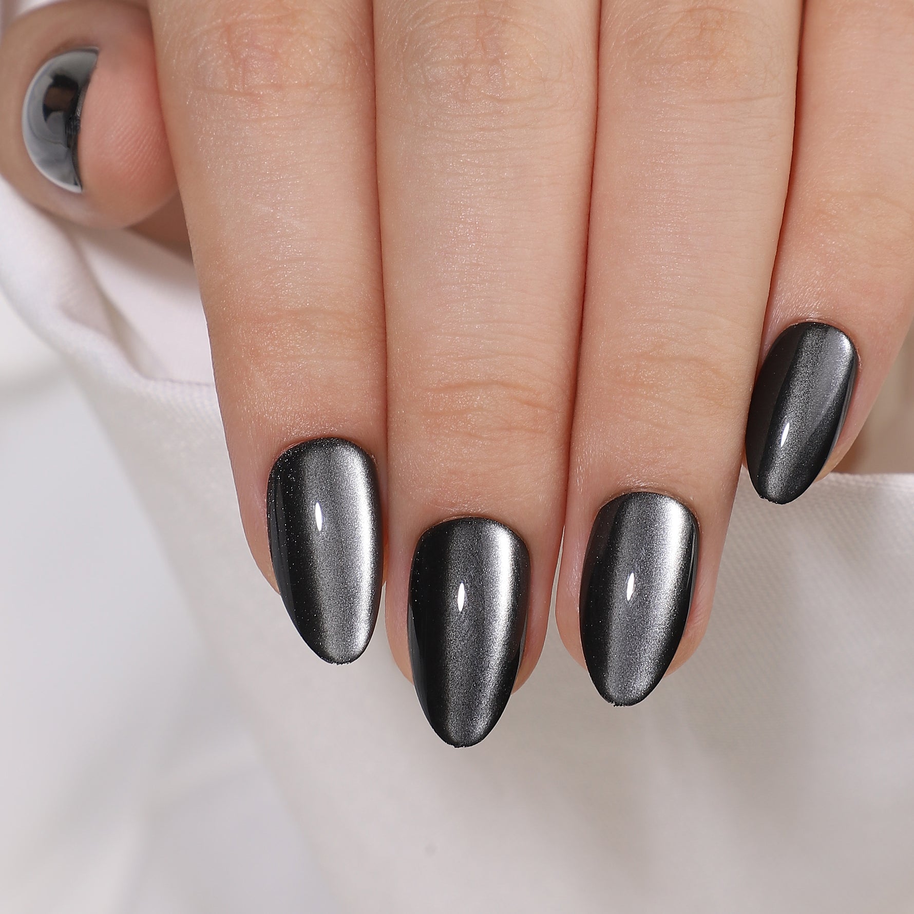 SHANGMENG® Spooky Black Cat Eye Short Almond Soft Gel Party Nails