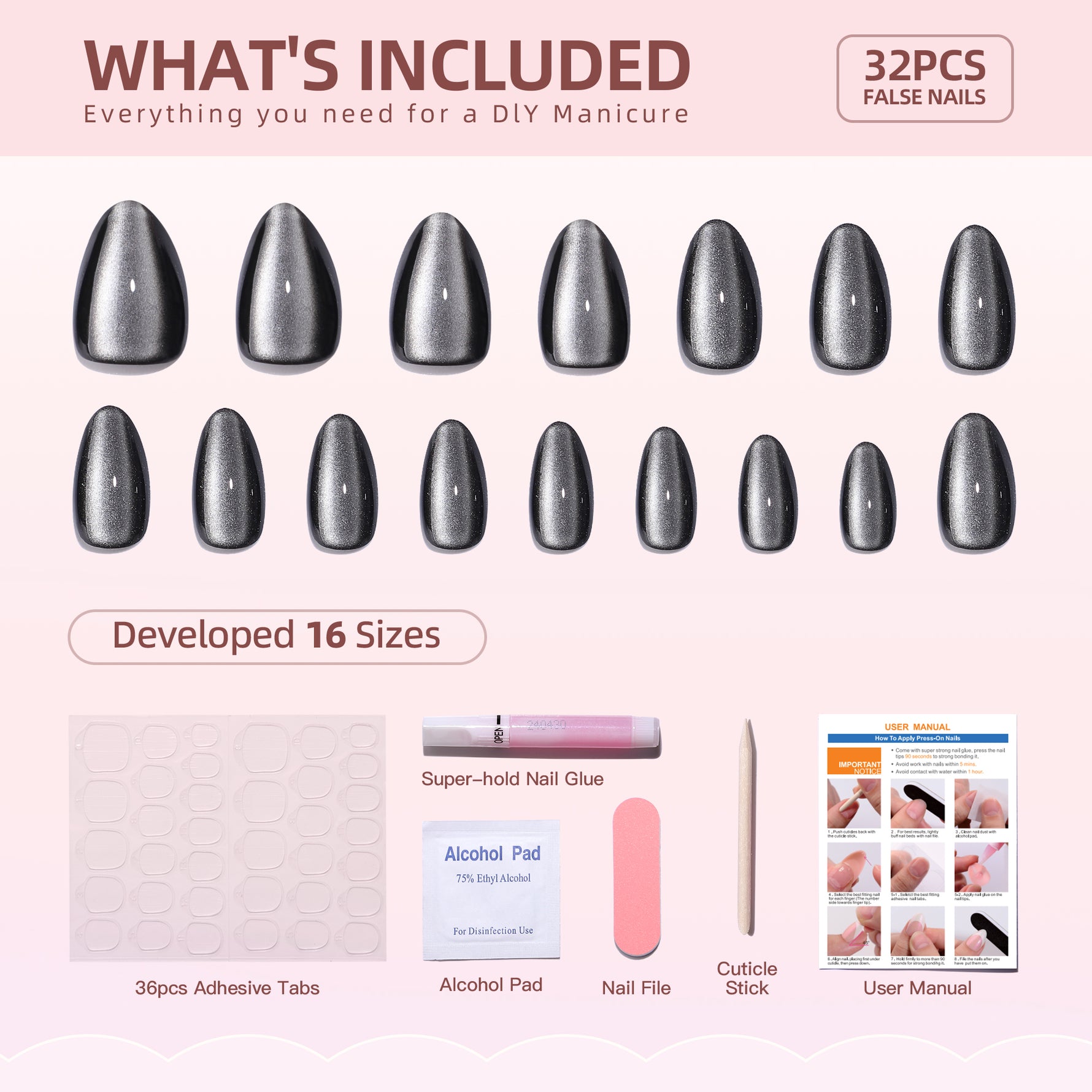 • 32 Gel Nails (16 inclusive sizes, 32 pieces)