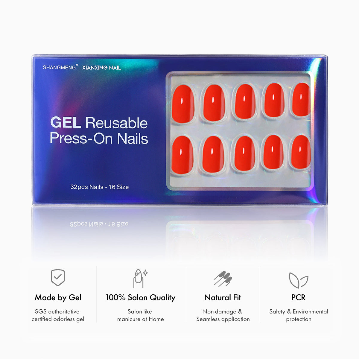 Made by Soft Gel: SHANGMENG®Nail created these acrylic press on nails entirely through a handmade 6-layer process (soft gel tip, base gel, color gel, pattern, double-layer gel finish). The colors and patterns are made with gel polish instead of being printed with ink. You can get our salon-like nails in 5 minutes!!