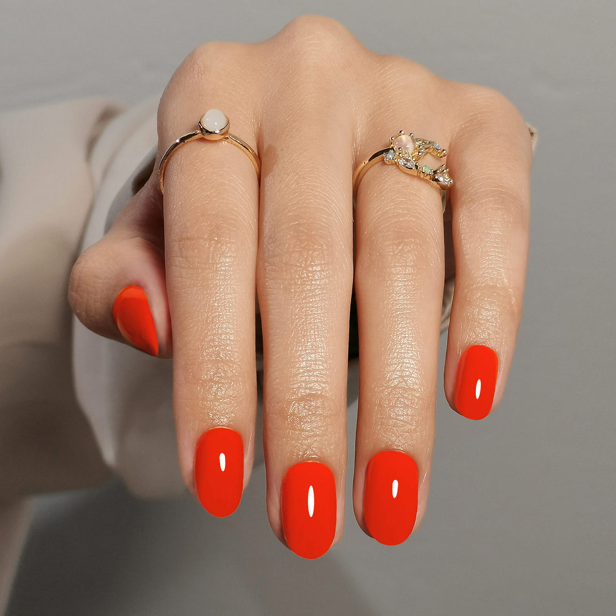SHANGMENG® Tomato Red Short Oval Press-on Nails