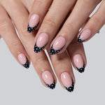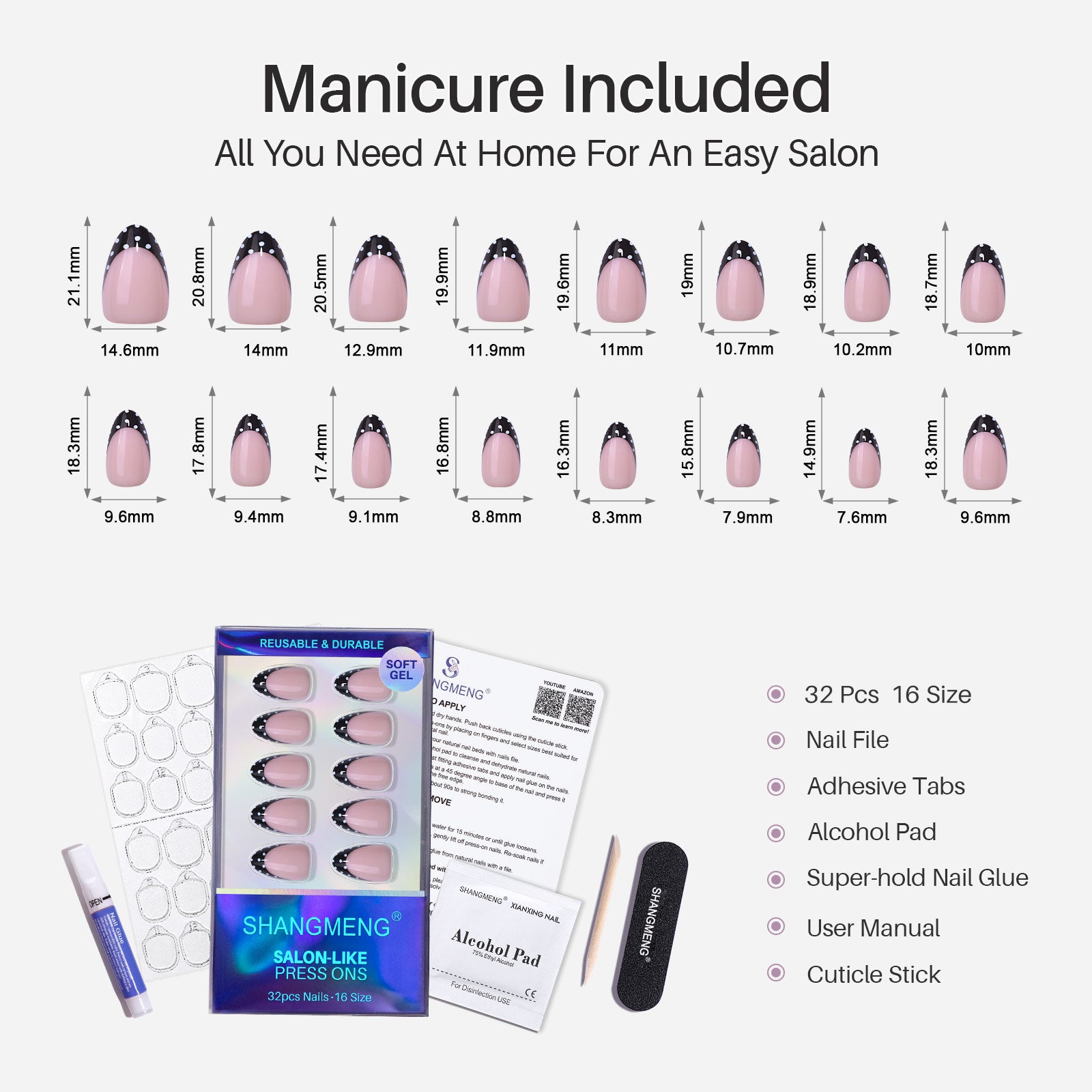 SHANGMENG new trending Press On Nails. Step up your nail game with this stylish Black Polka Dot French Manicure — the perfect blend of classic elegance and modern edge.