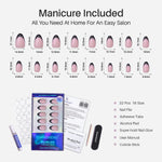 32* gel nail tips, 1*2G glue, 36*jelly tabs, 1*mini nail file, 1*cuticle stick, 1*alcohol prep pad, 1*manual