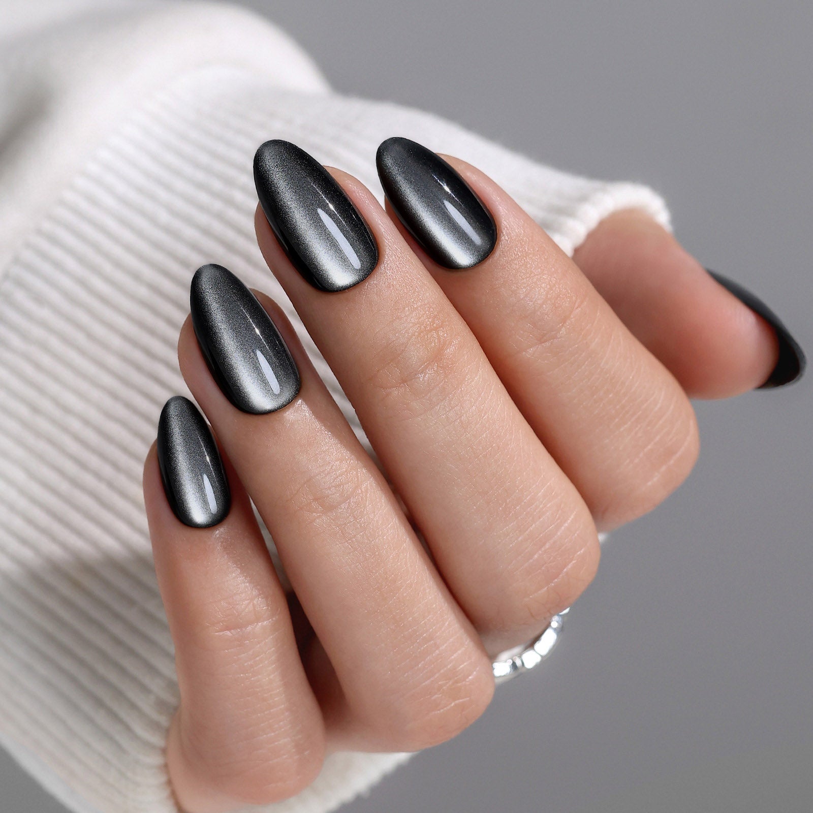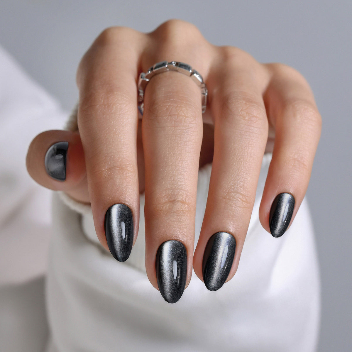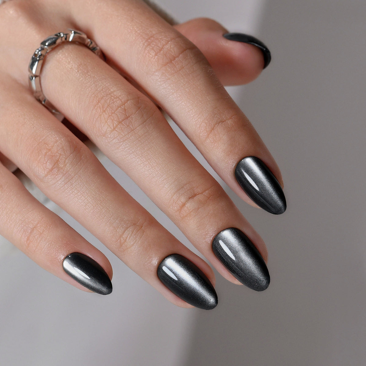Galaxy-Like Black Cat Eye Almond Nails detail image 1 Galaxy-Like Black Cat Eye Almond Nails detail image 2 Galaxy-Like Black Cat Eye Almond Nails detail image 3