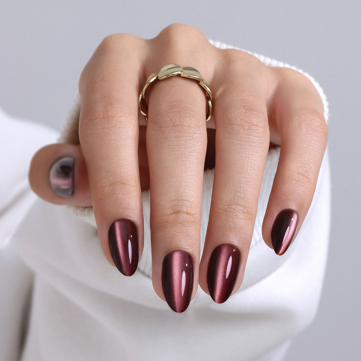 Chocolate Brown Cat Eye Almond Nails detail image 1 Chocolate Brown Cat Eye Almond Nails detail image 2 Chocolate Brown Cat Eye Almond Nails detail image 3