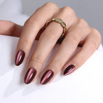 SHANGMENG new trending Press On Nails. Warm, glossy, and irresistibly mesmerizing — our Chocolate Brown Cat Eye Short Almond Nails elevate classic brown with a magnetic, light-catching finish. The rich cocoa base paired with a subtle cat eye shimmer creates depth and movement, giving your nails a soft glow that shifts beautifully in different lighting.