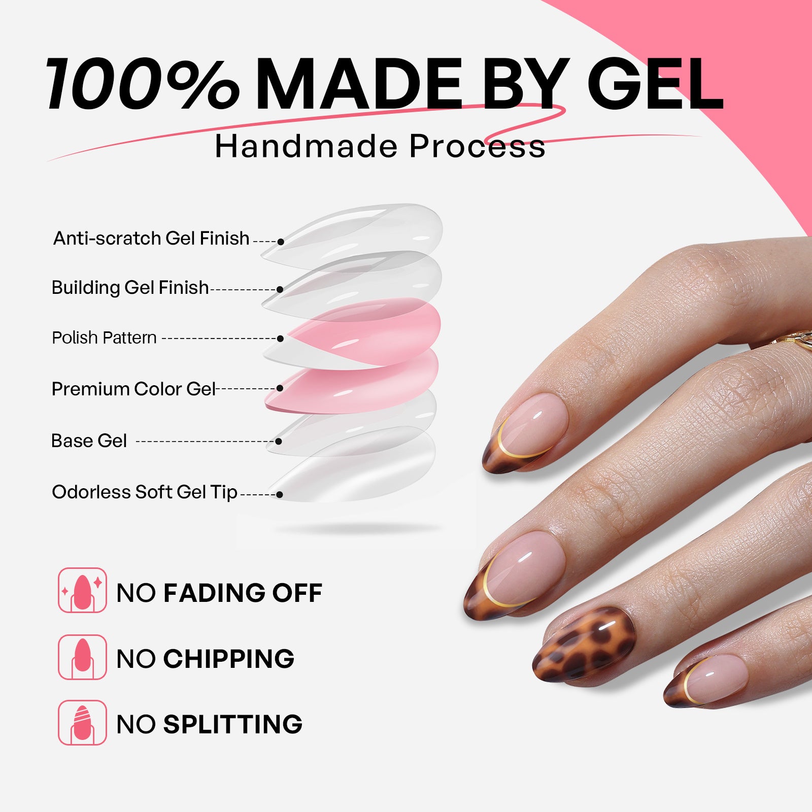 Made by Soft Gel: SHANGMENG®Nail created these acrylic press on nails entirely through a handmade 6-layer process (soft gel tip, base gel, color gel, pattern, double-layer gel finish). The colors and patterns are made with gel polish instead of being printed with ink. You can get our salon-like nails in 5 minutes!!