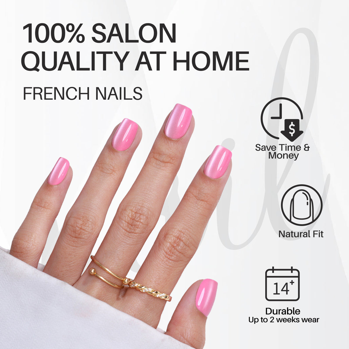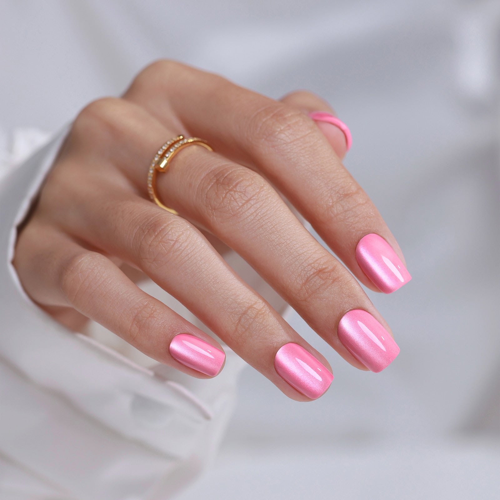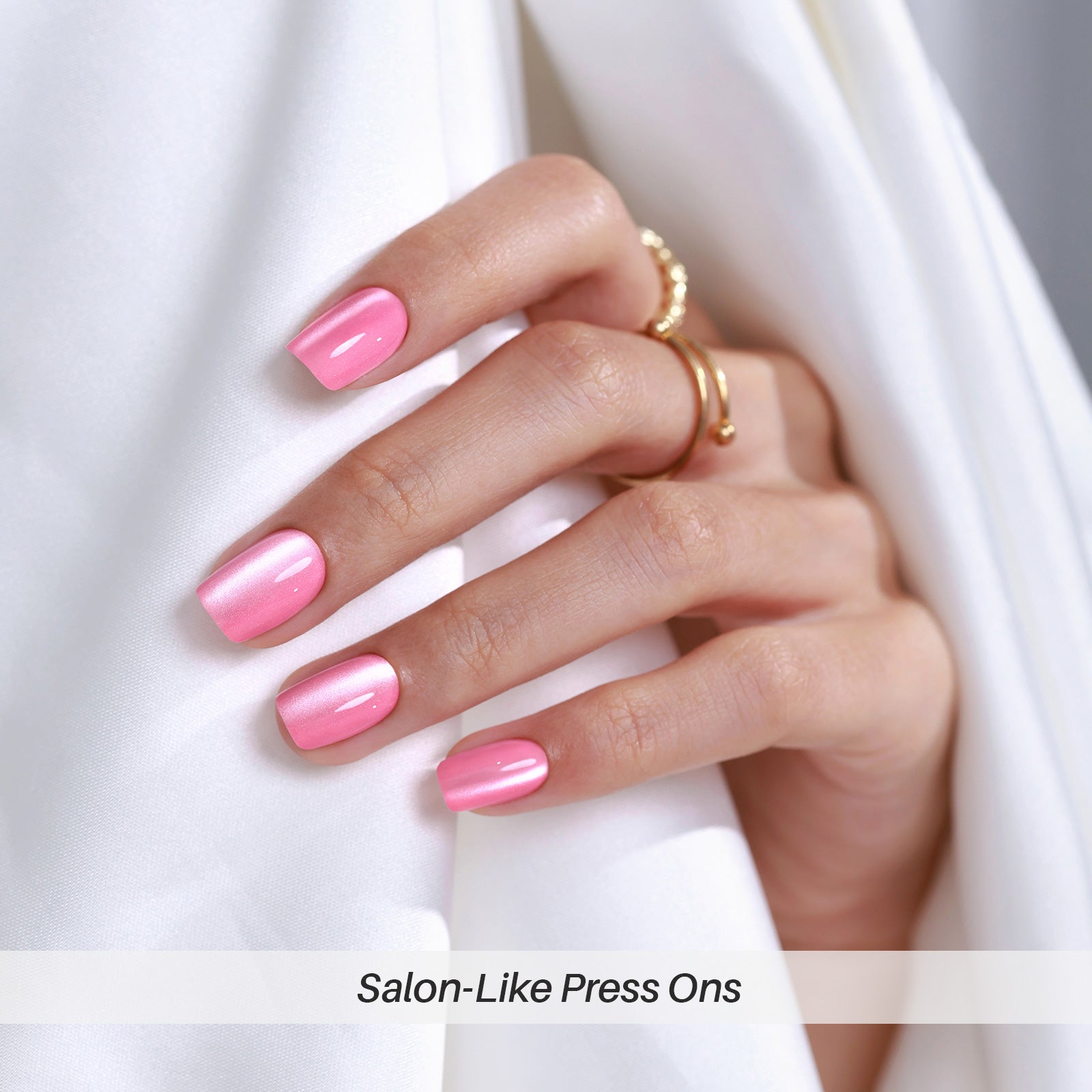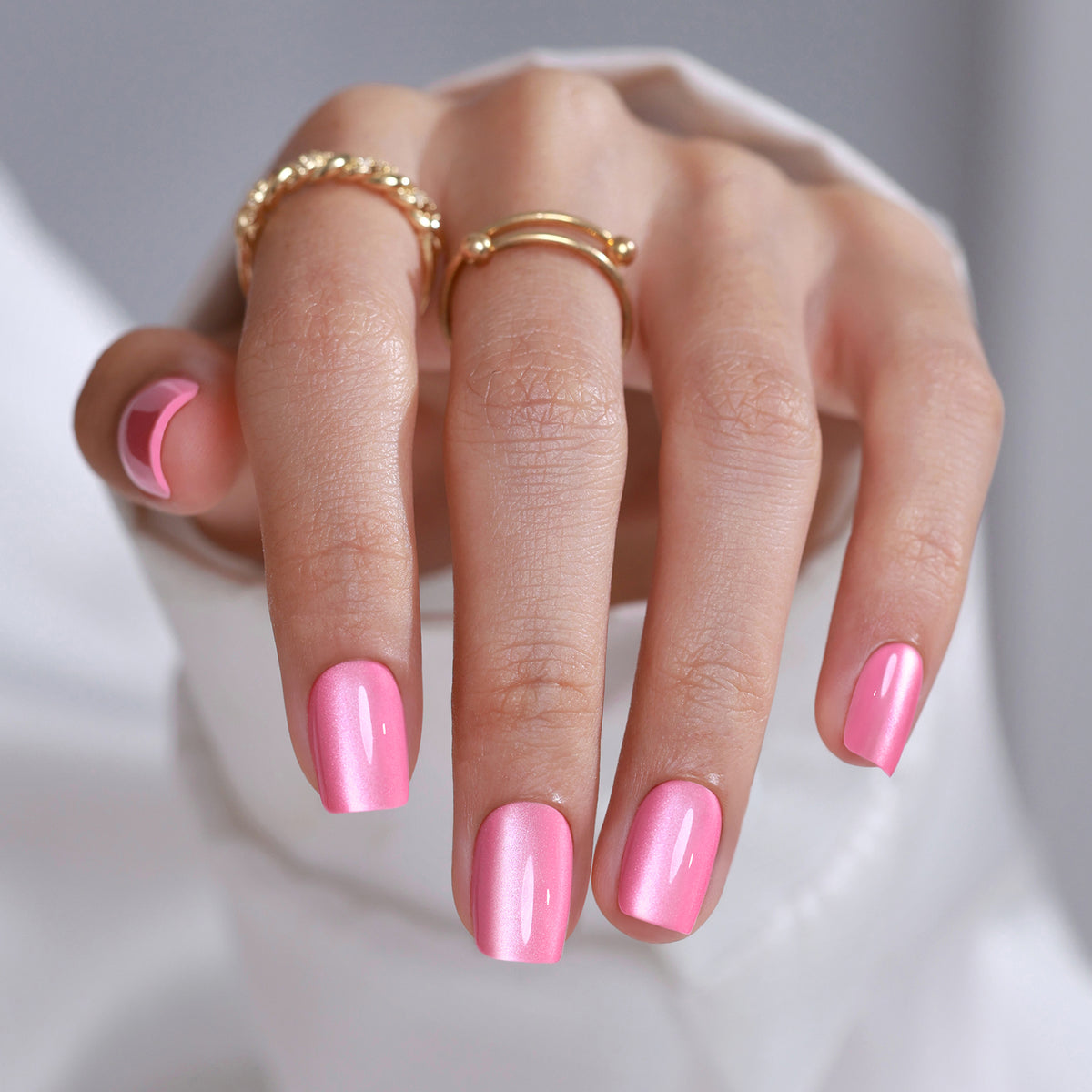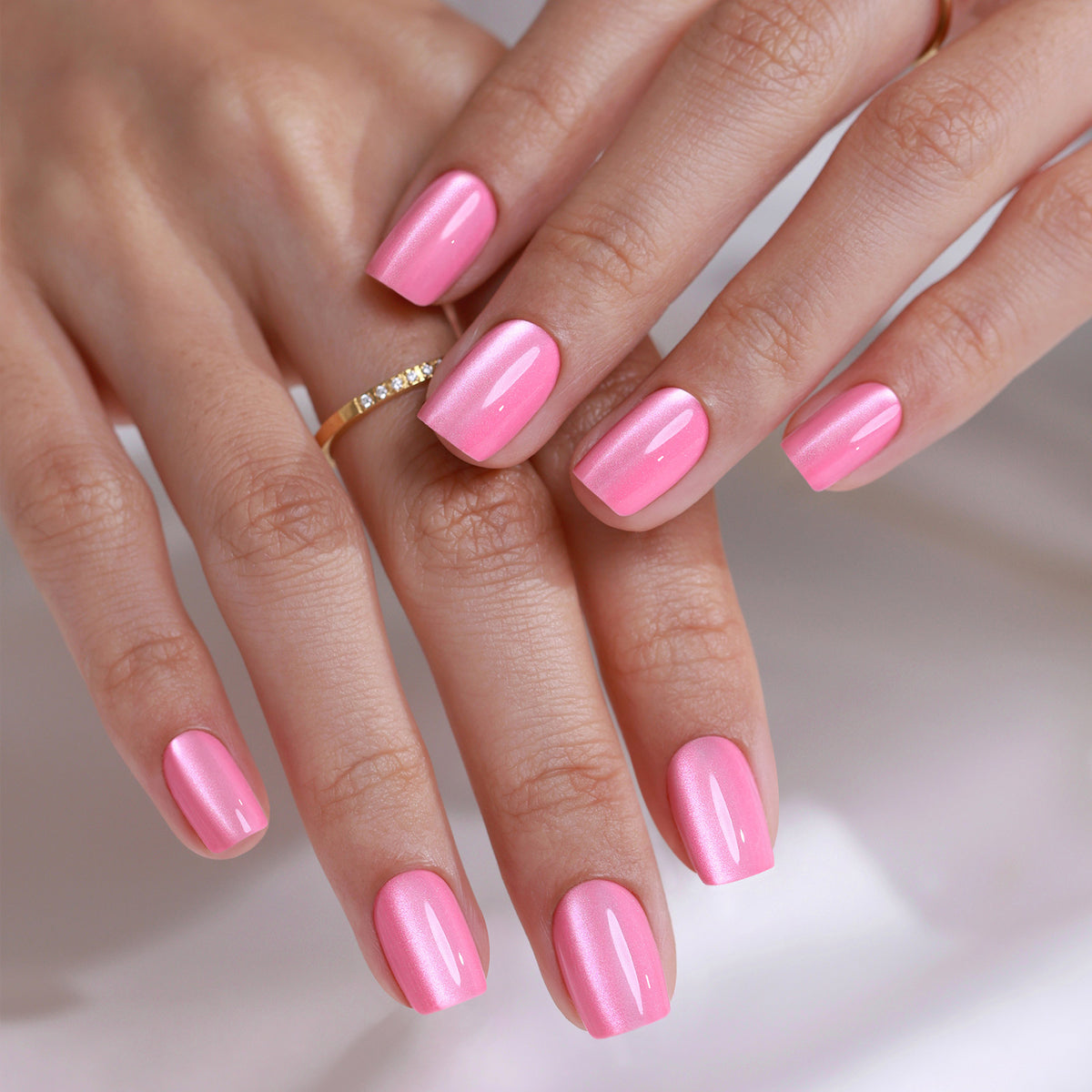 SHANGMENG® Cat Eye Baby Pink Short Square Press on Nails Kit