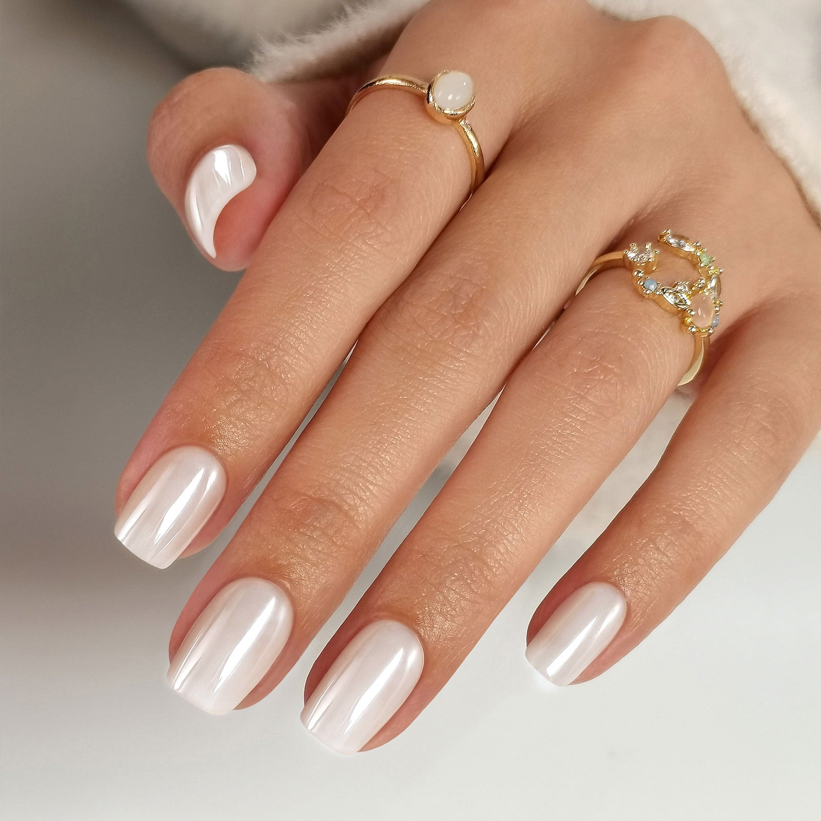 Glazed Chrome Pearl White Nails