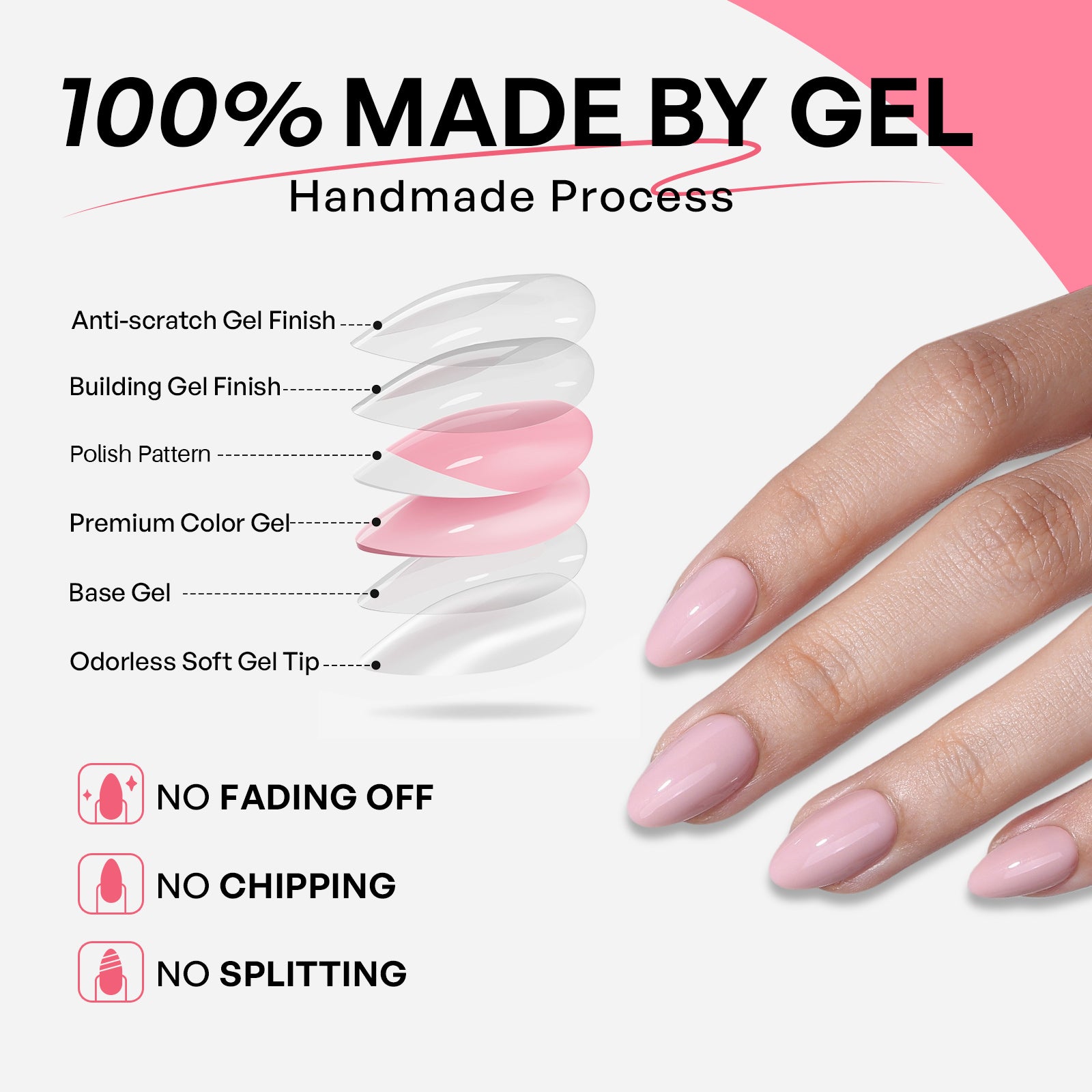 Made by Soft Gel: SHANGMENG®Nail created these acrylic press on nails entirely through a handmade 6-layer process (soft gel tip, base gel, color gel, pattern, double-layer gel finish). The colors and patterns are made with gel polish instead of being printed with ink. You can get our salon-like nails in 5 minutes!!