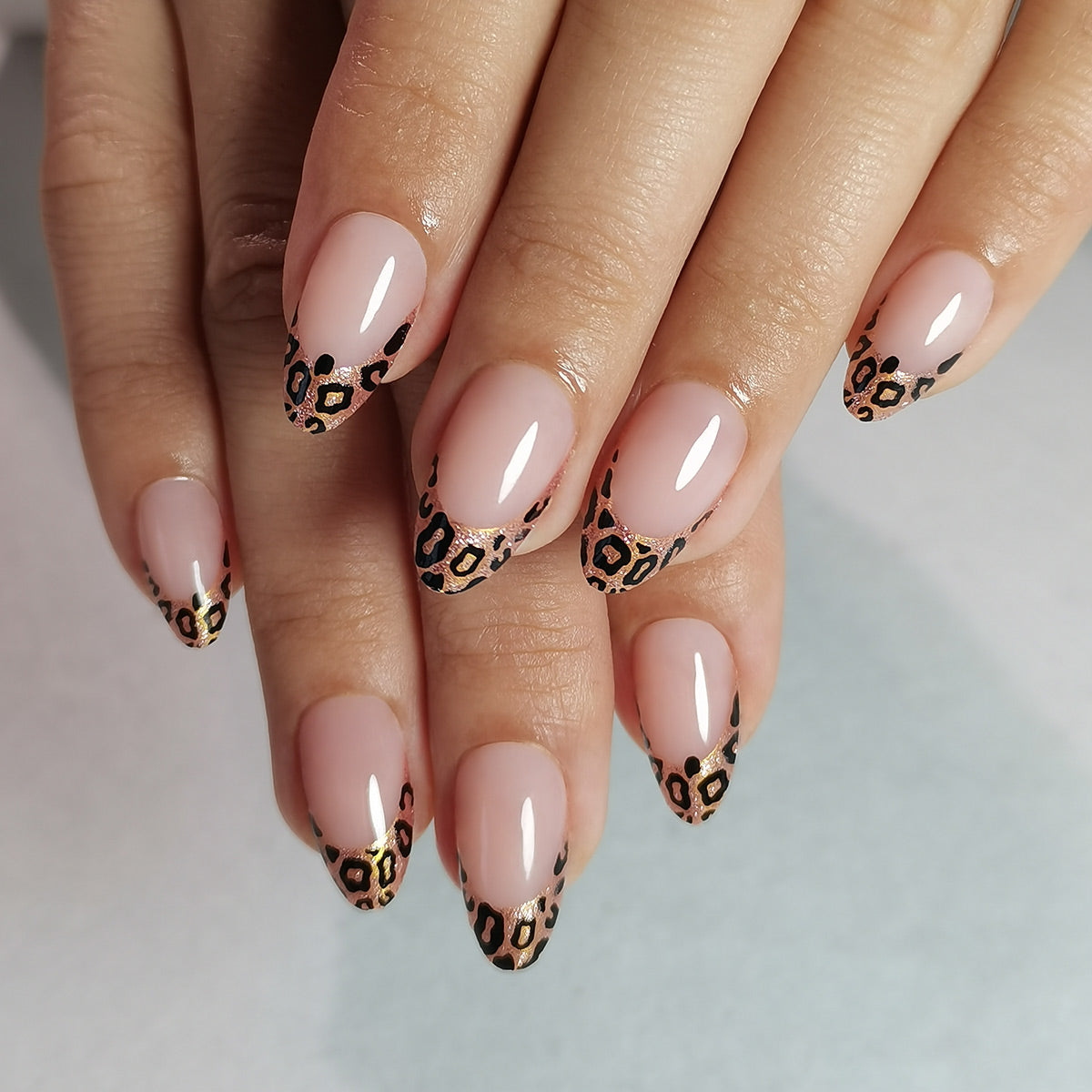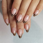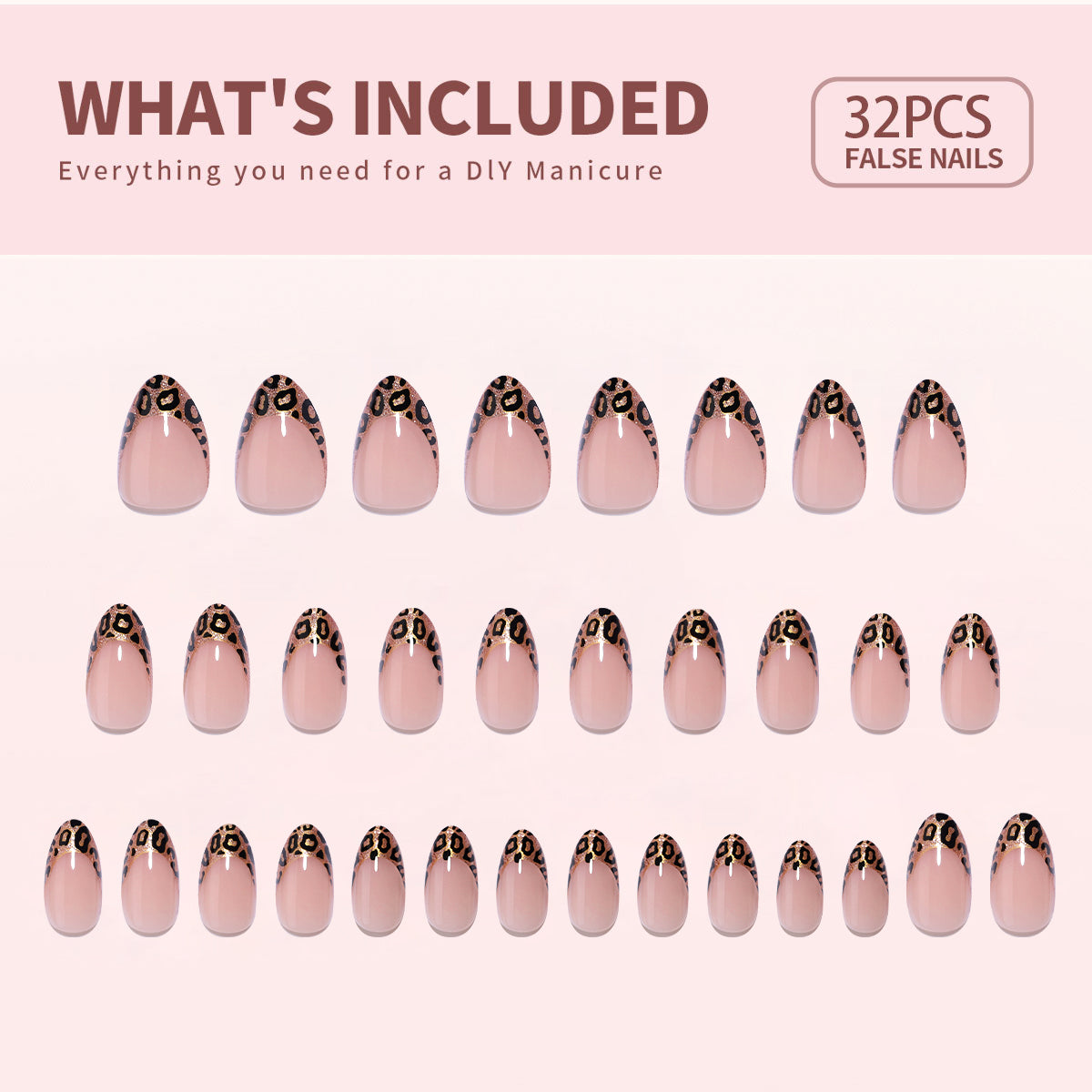 SHANGMENG® Leopard Print French Tips Almond Nails - Soft Gel Press on Nails