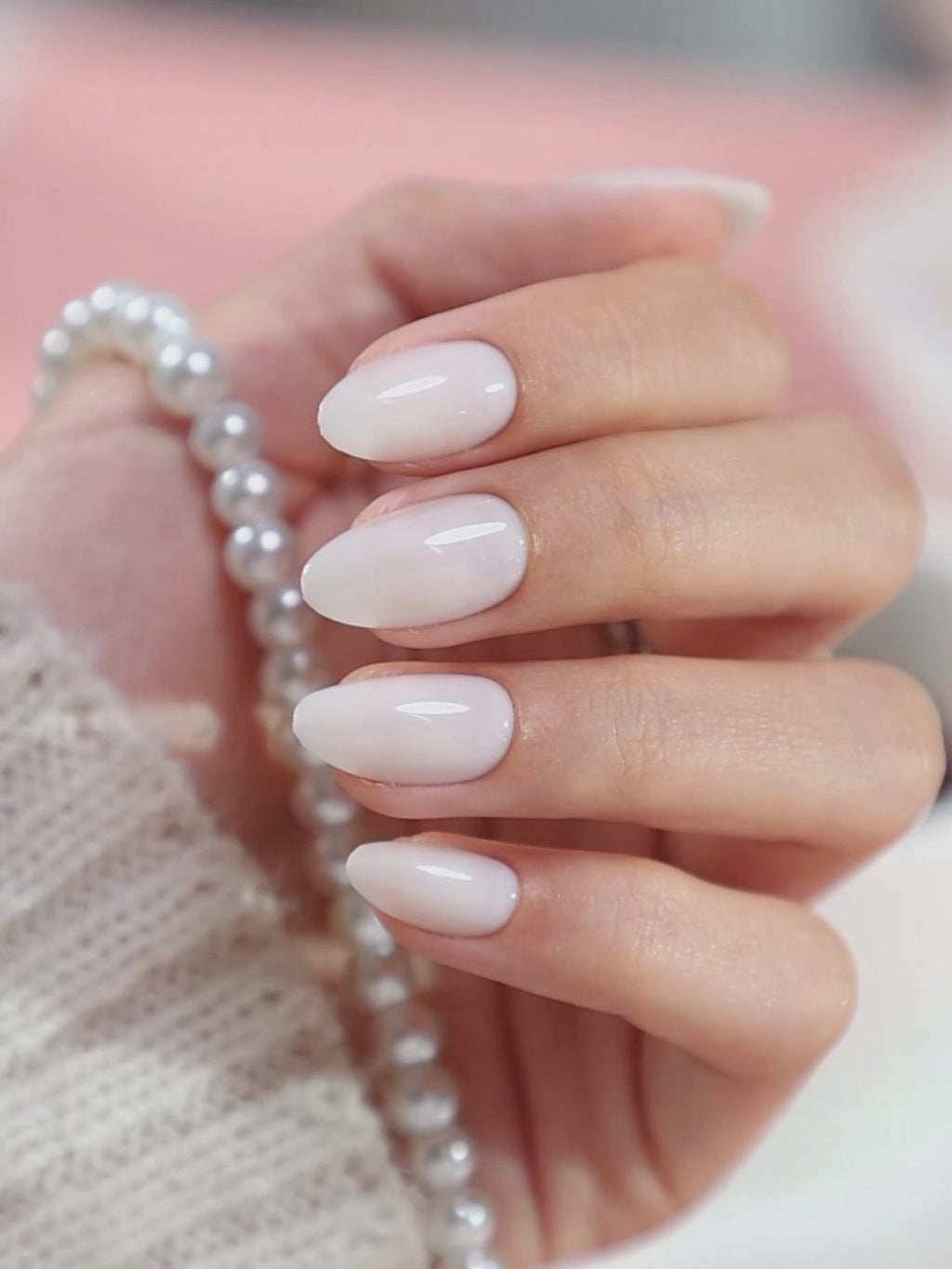 SHANGMENG® Milky White Short Almond Soft Gel Press-on Nails