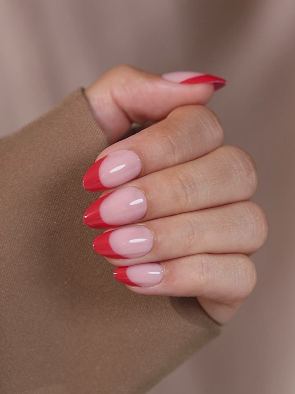 SHANGMENG® Red French Tips Short Almond Soft Gel Press on Nails
