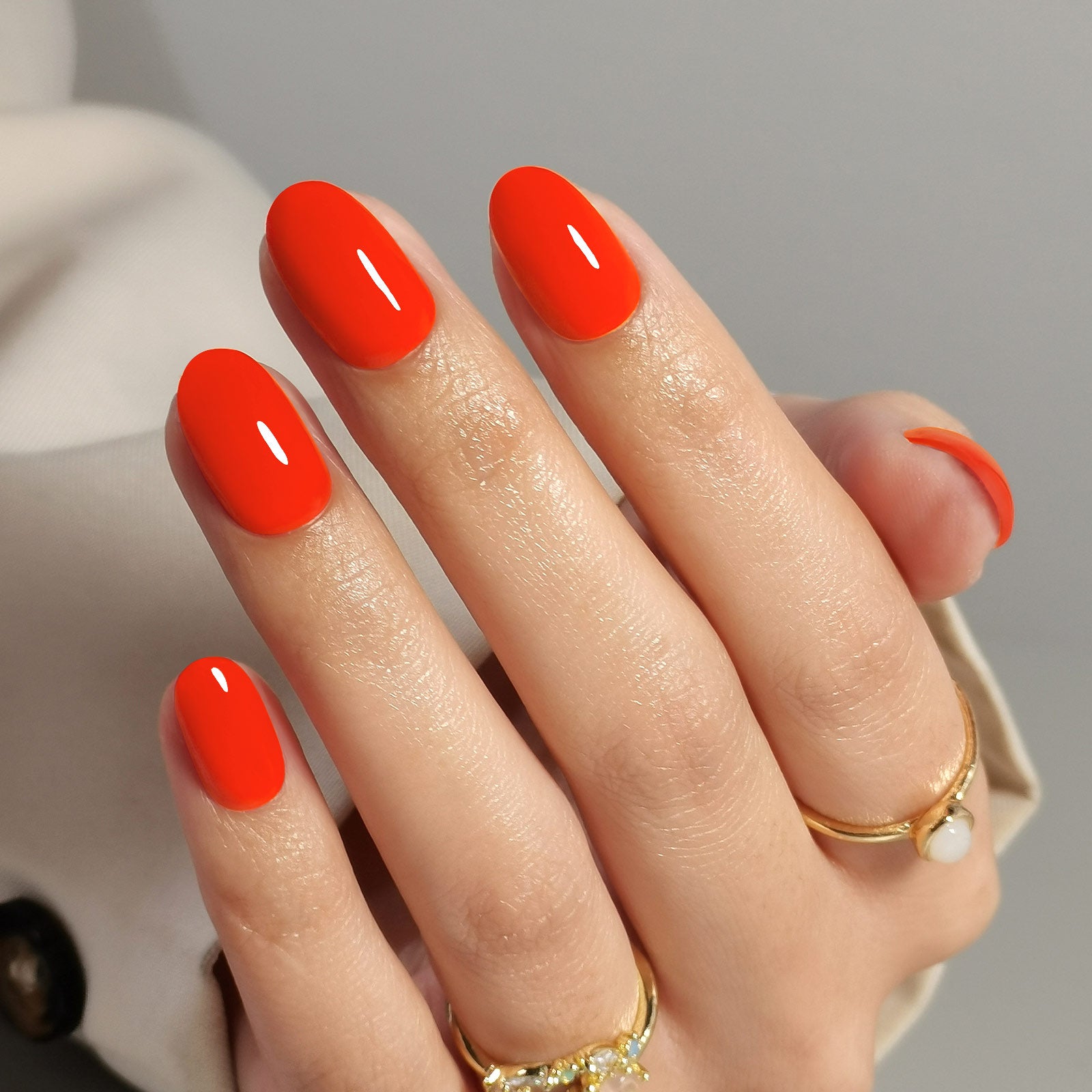 SHANGMENG® Tomato Red Short Oval Press-on Nails