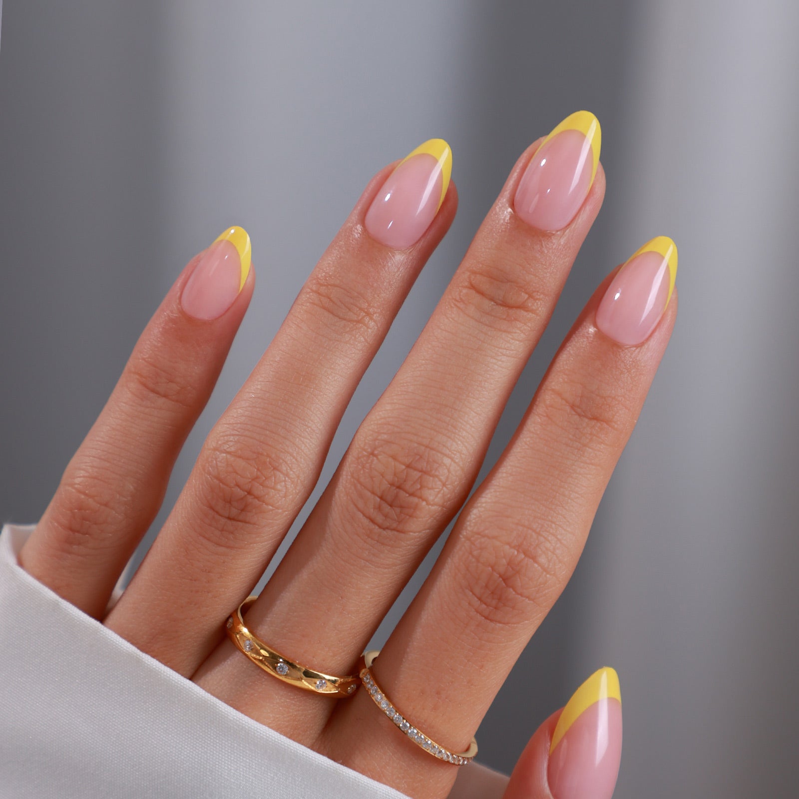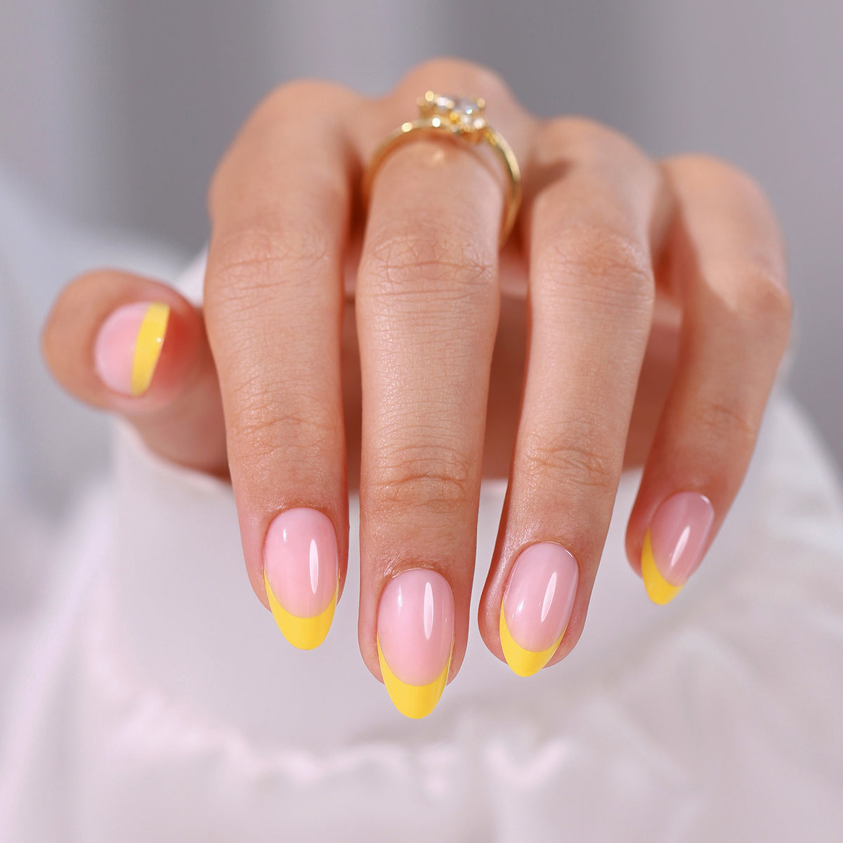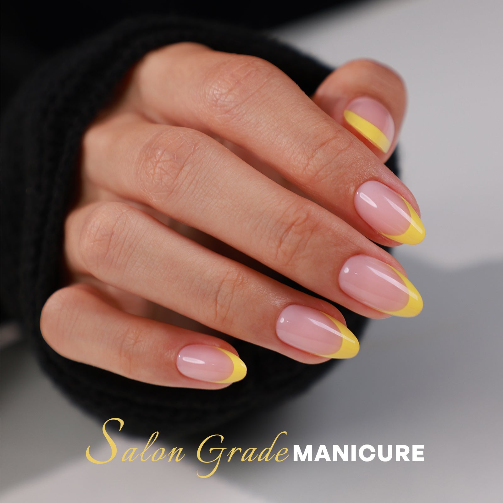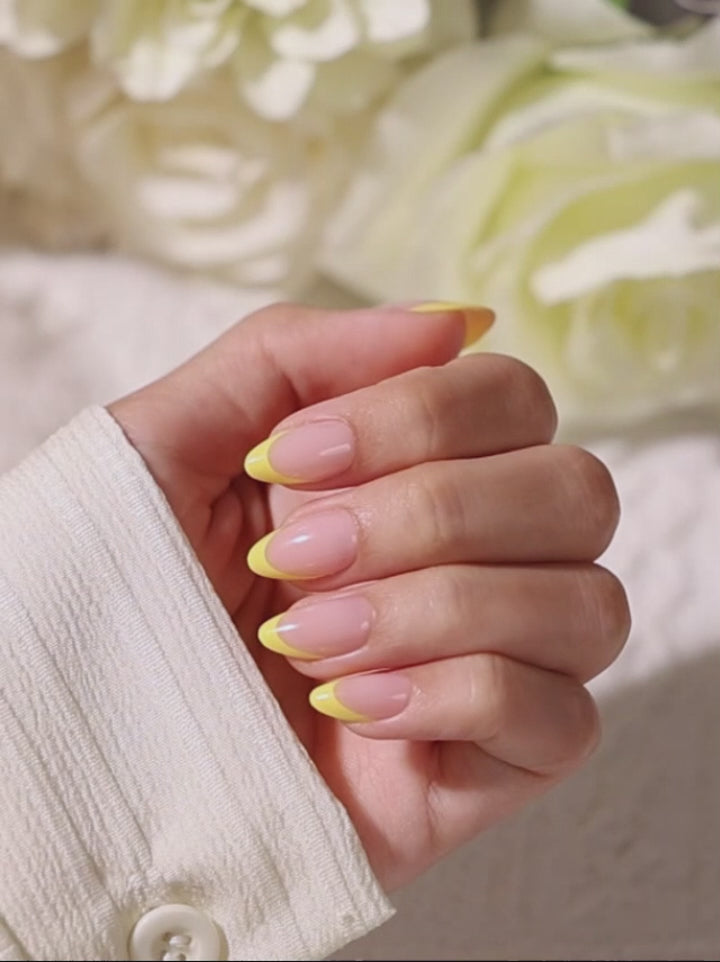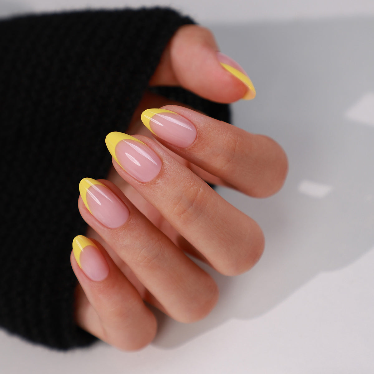 SHANGMENG® Yellow French Tips Fall Short Almond Soft Gel Press on Nails