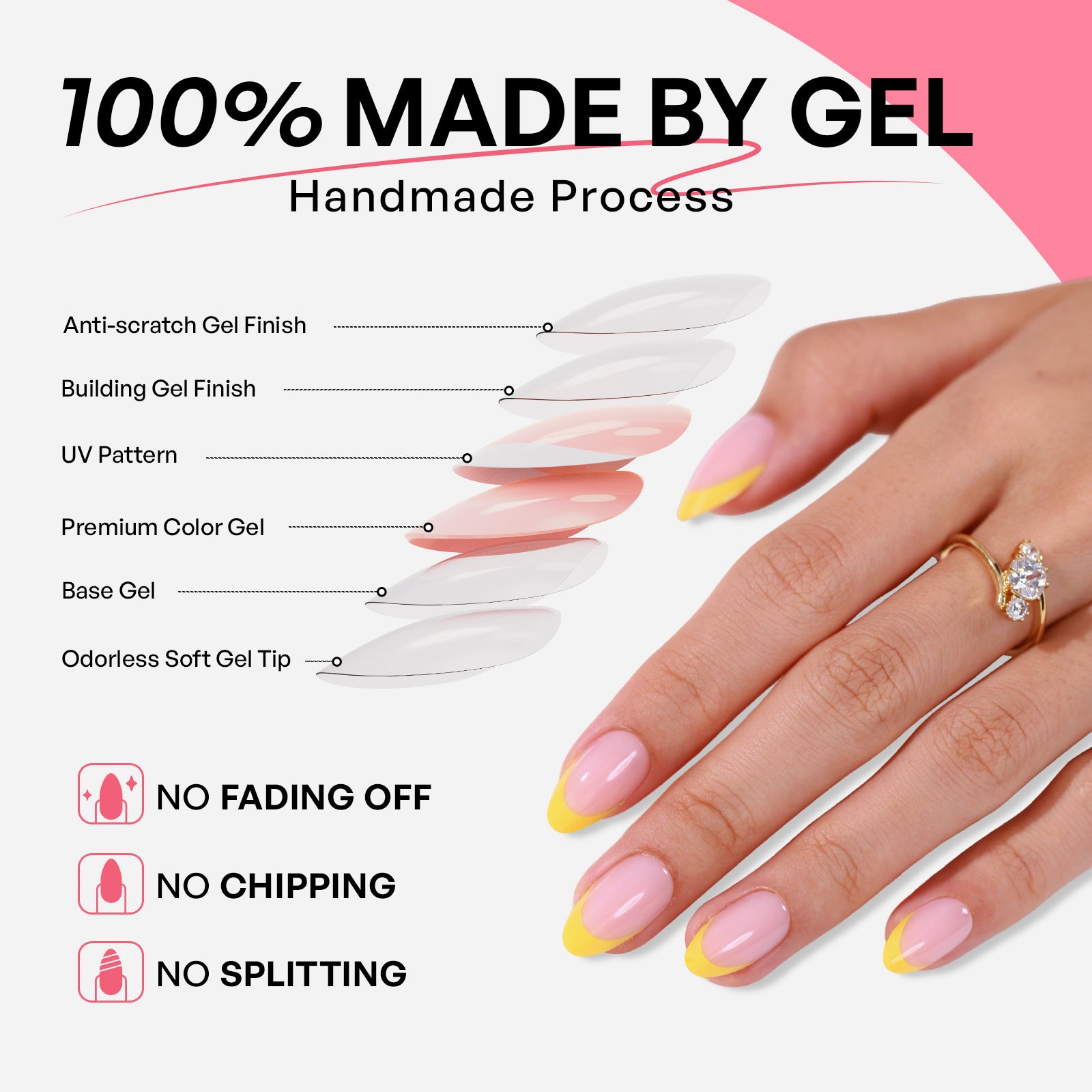 Made by Soft Gel: SHANGMENG®Nail created these acrylic press on nails entirely through a handmade 6-layer process (soft gel tip, base gel, color gel, pattern, double-layer gel finish). The colors and patterns are made with gel polish instead of being printed with ink. You can get our salon-like nails in 5 minutes!!